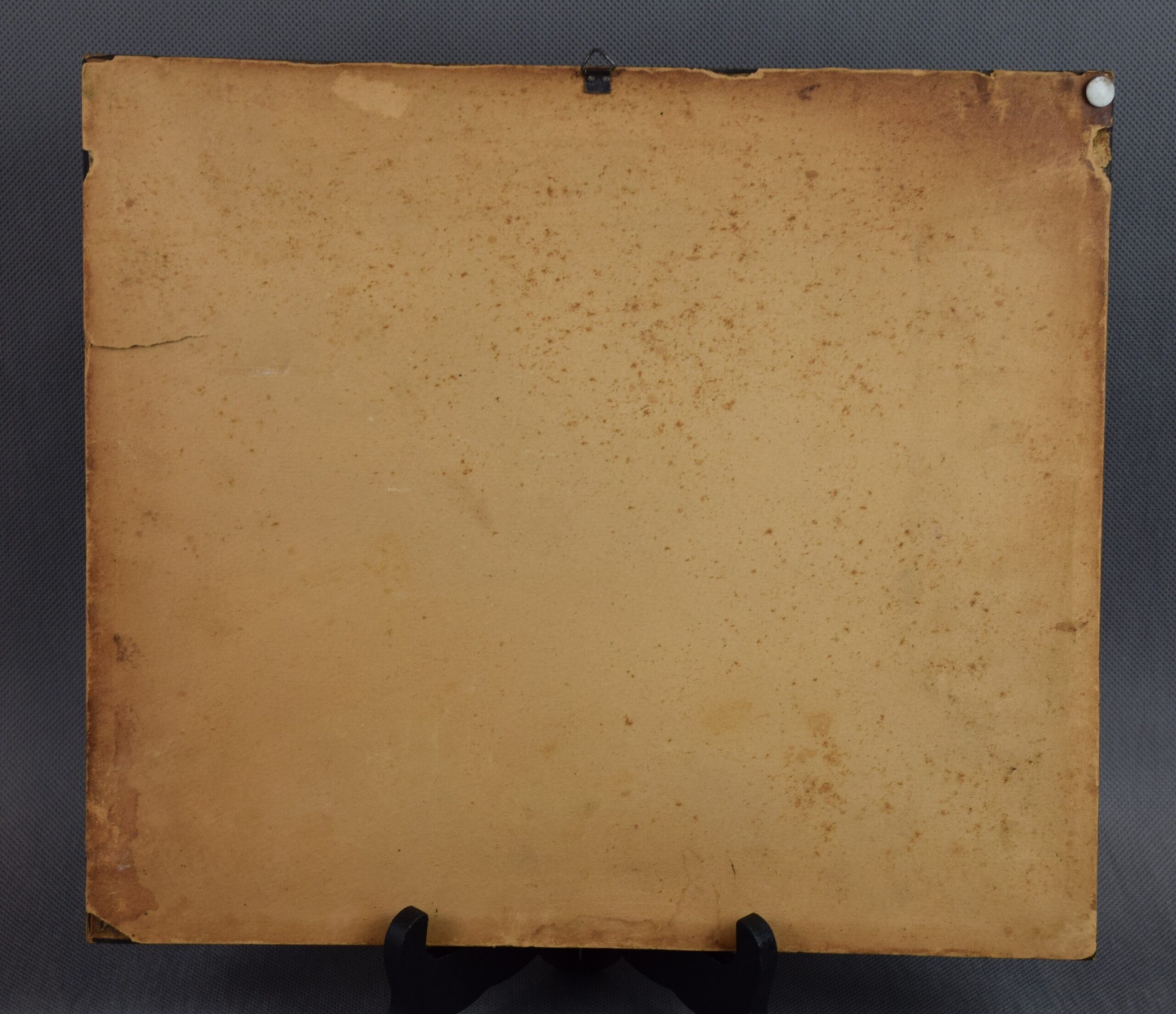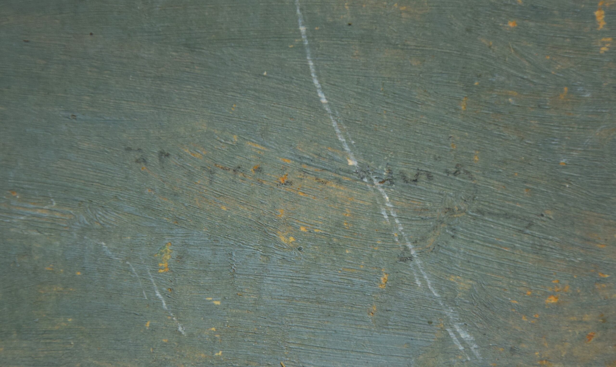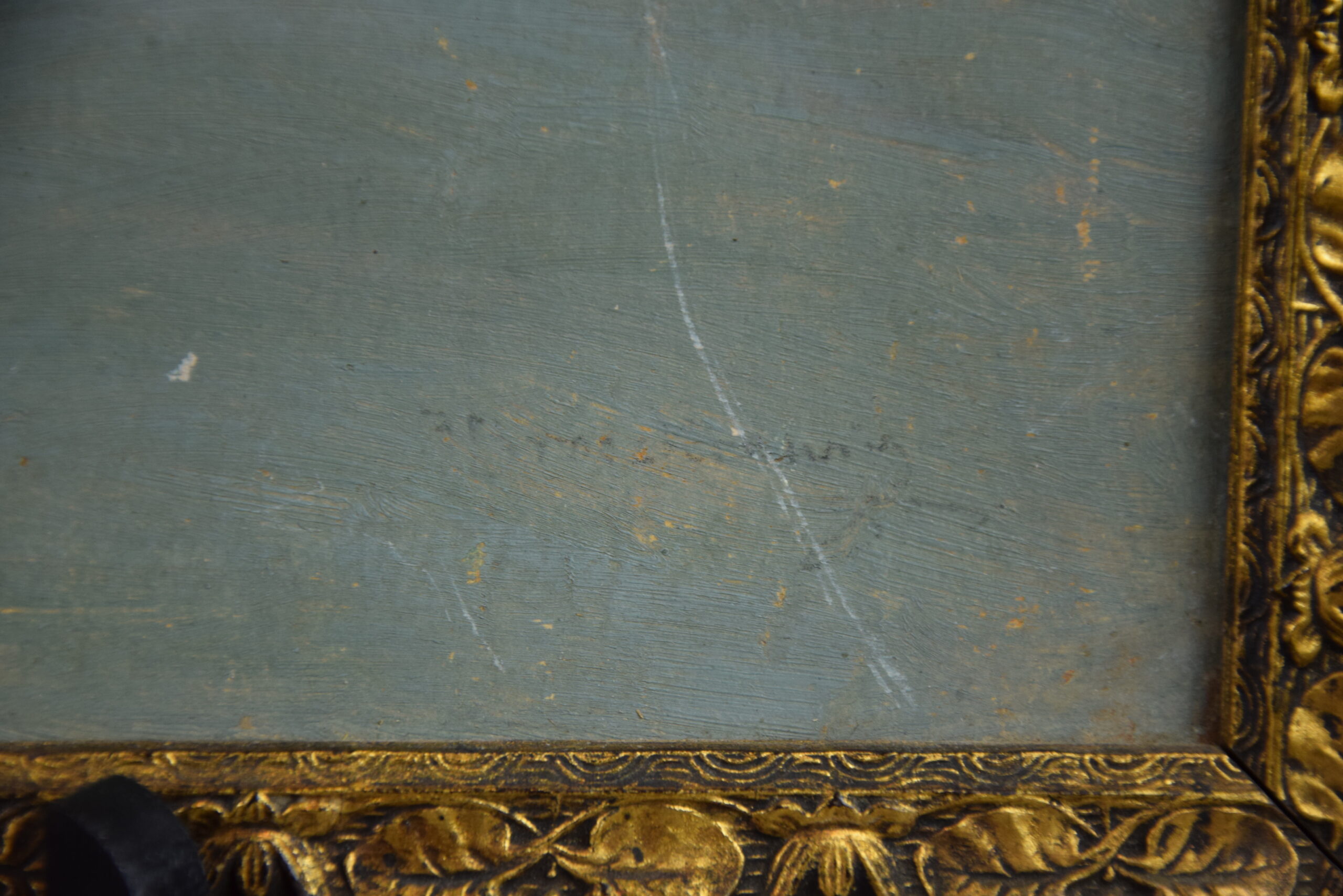 Obraz wymaga niewielkiej konserwacji, jest zabrudzony i posiada liczne drobne zadrapania.