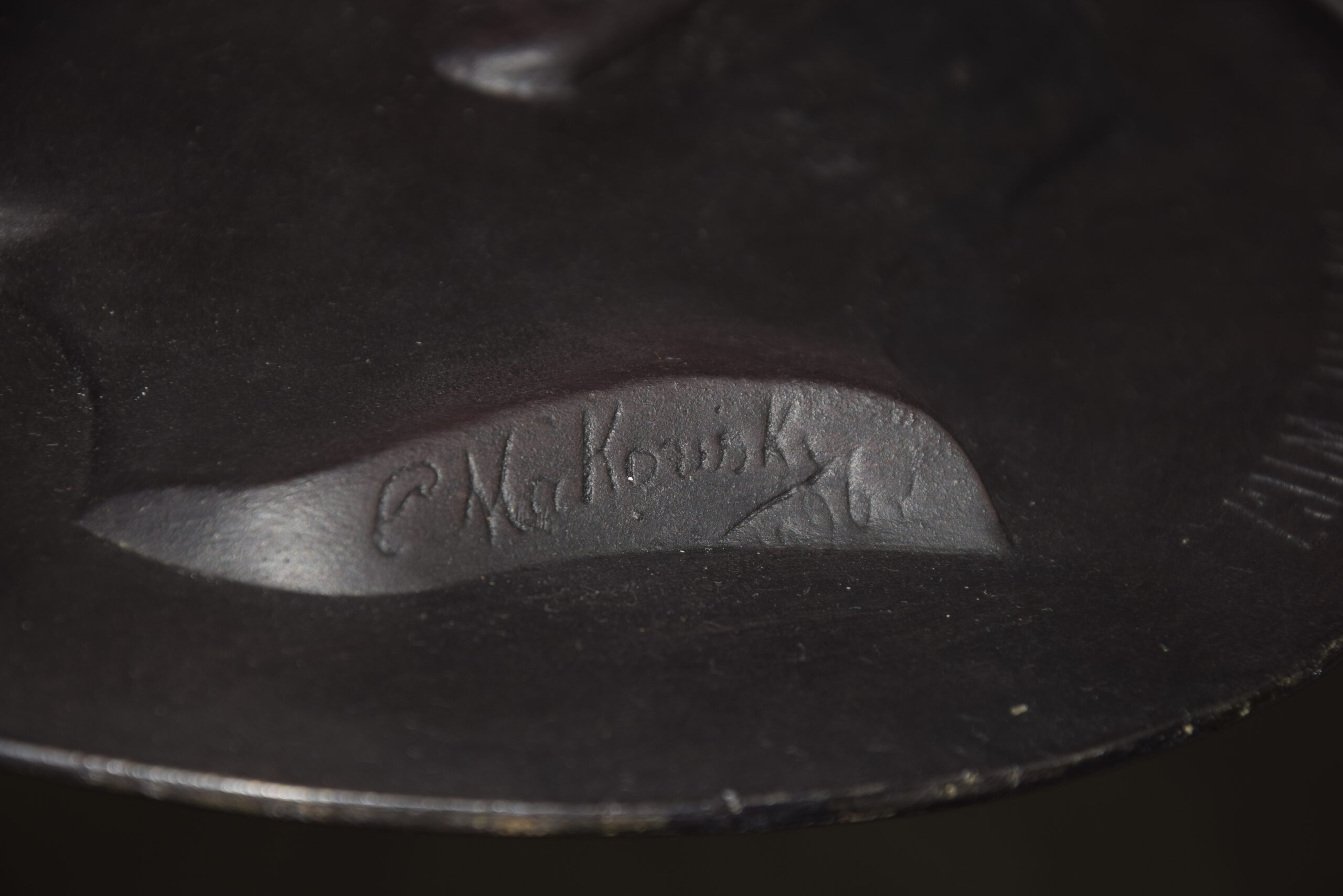 Stop metali pokryty czarną patyną. Patynowanie odtworzone współcześnie.