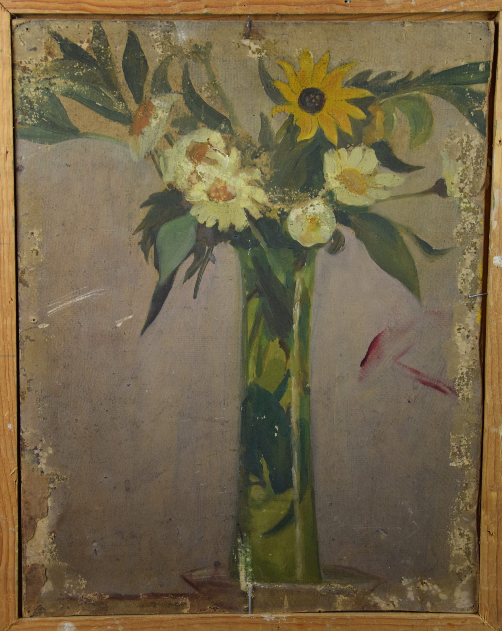 Stan dobry z widocznymi spękaniami (krakelurą) na warstwie malarskiej.