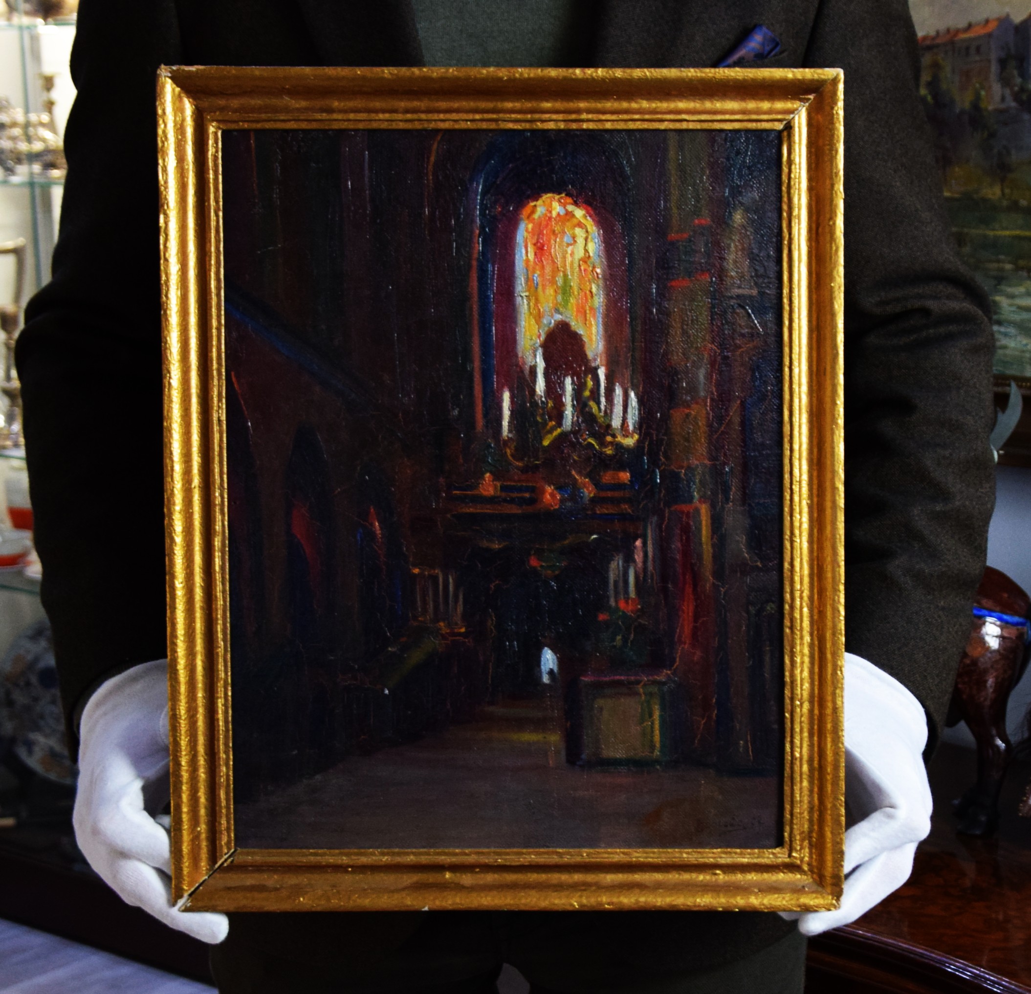 Eugeniusz DĄBROWSKI-DĄBROWA (1870-1941), „Wnętrze kościoła / Kwiaty”, 1909 r. (dwustronny)