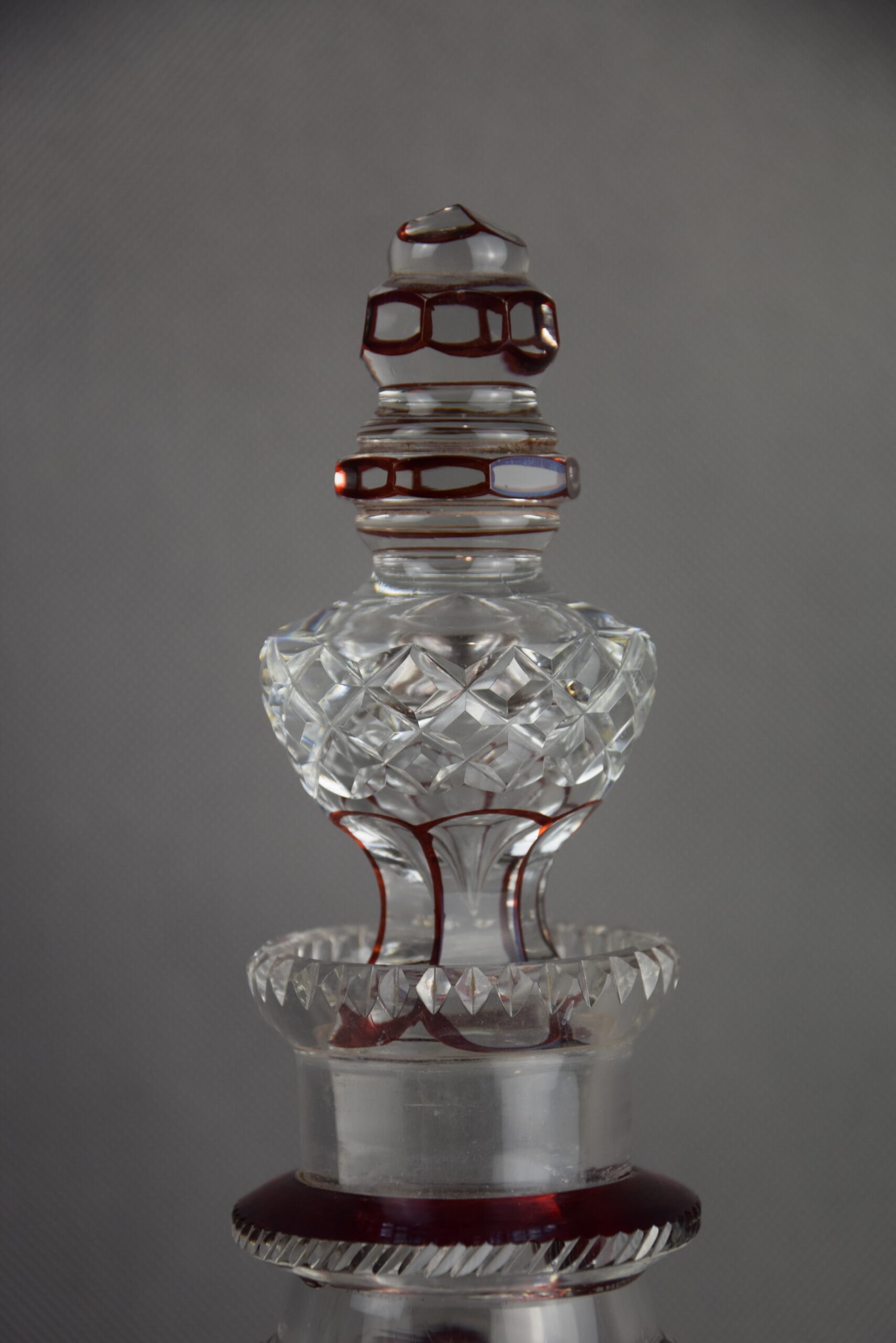 Szkło ołowiowe, szlifowane, lazur rubinowy.