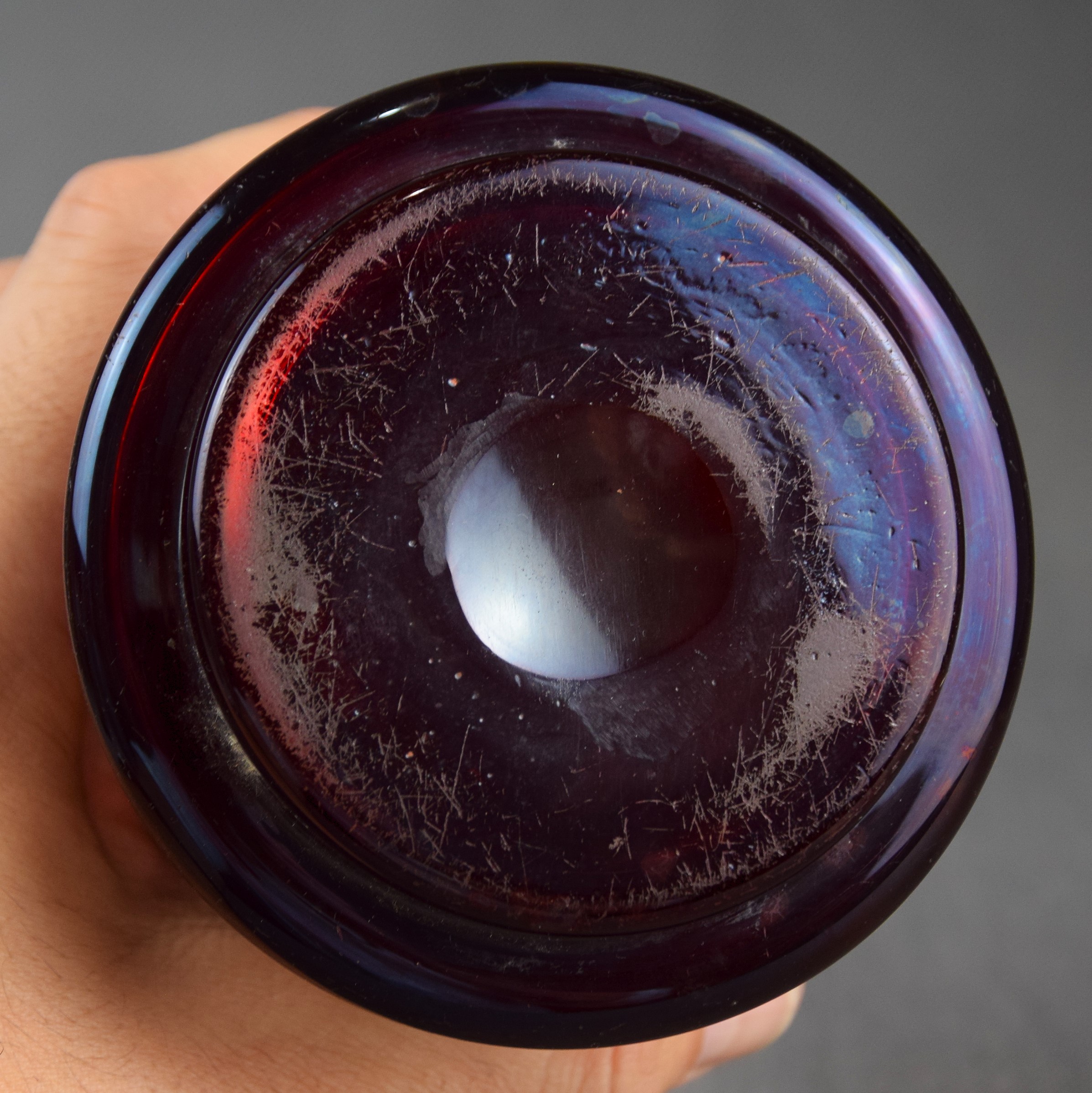 Szkło, lazur rubinowy, szlifowane.
