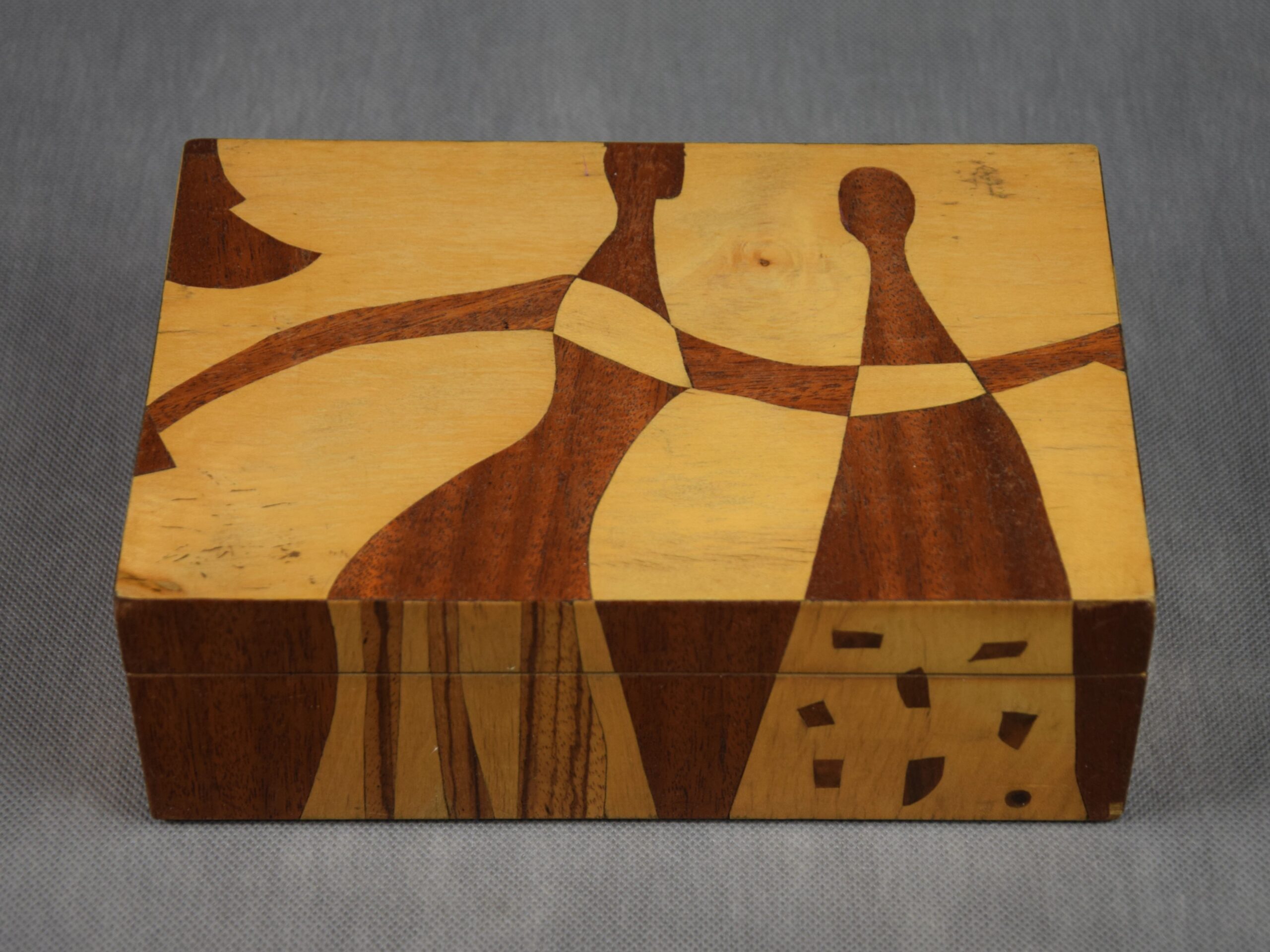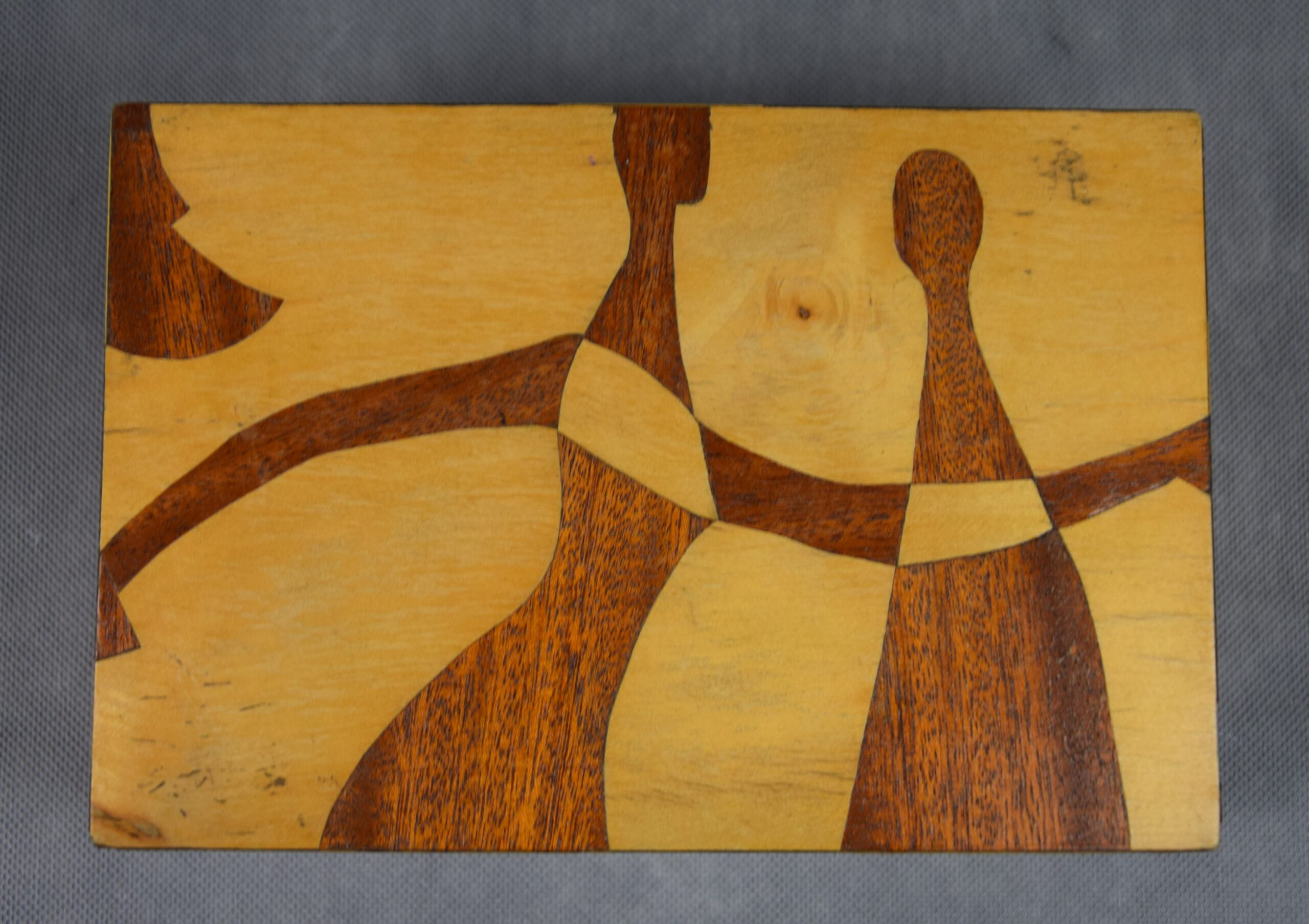 Kaseta „Postacie”, drewno intarsjowane, Polska, 1965 r.