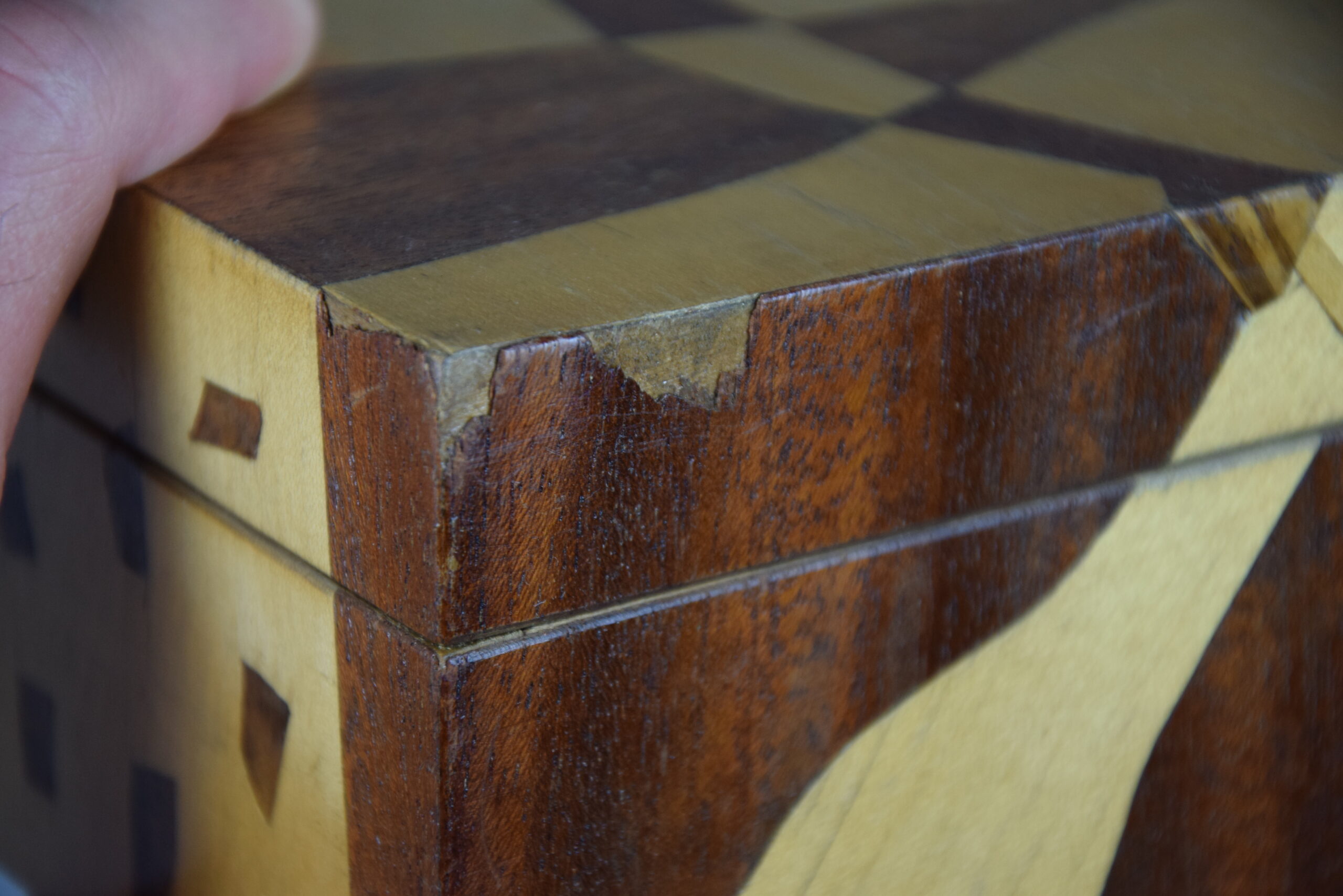 Kaseta drewniana intarsjowana.