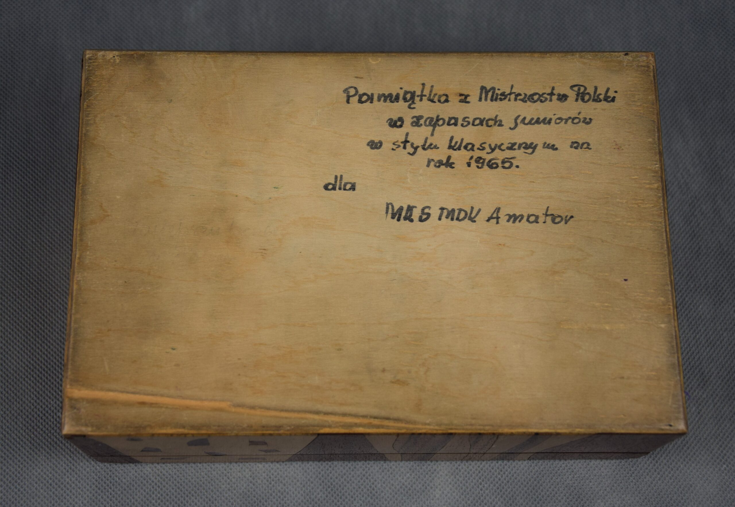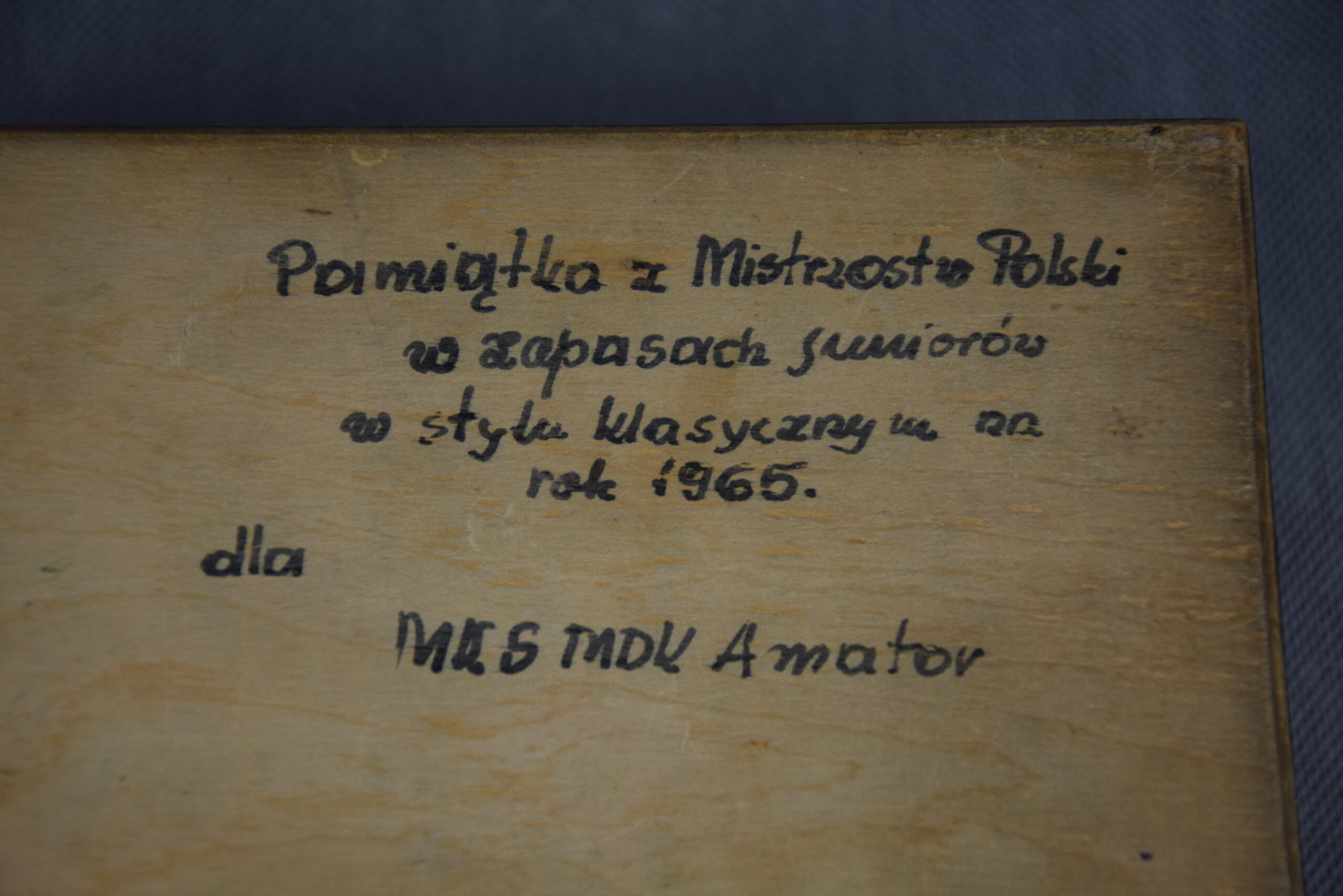 Na spodzie odręczna dedykacja z okazji zawodów sportowych.