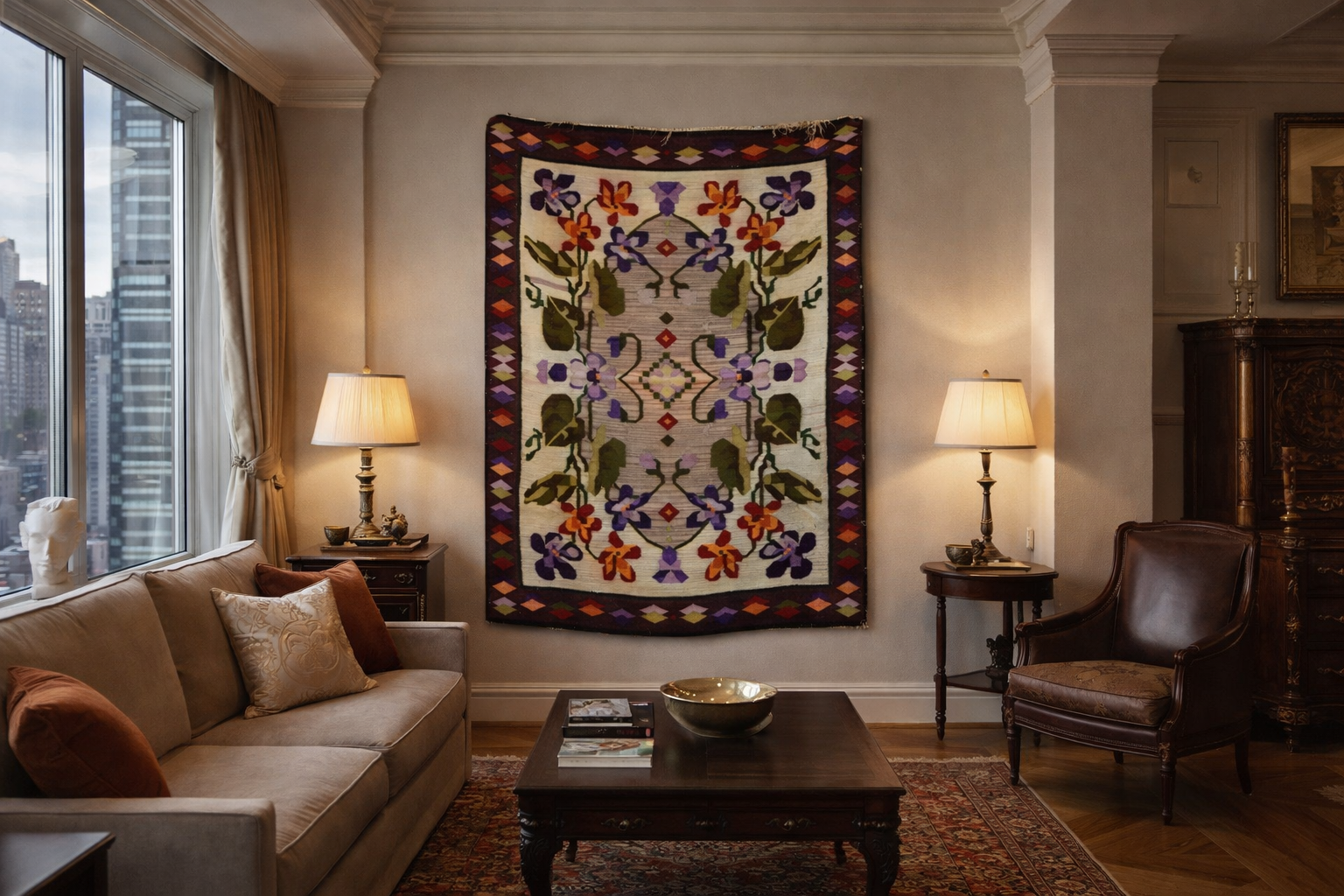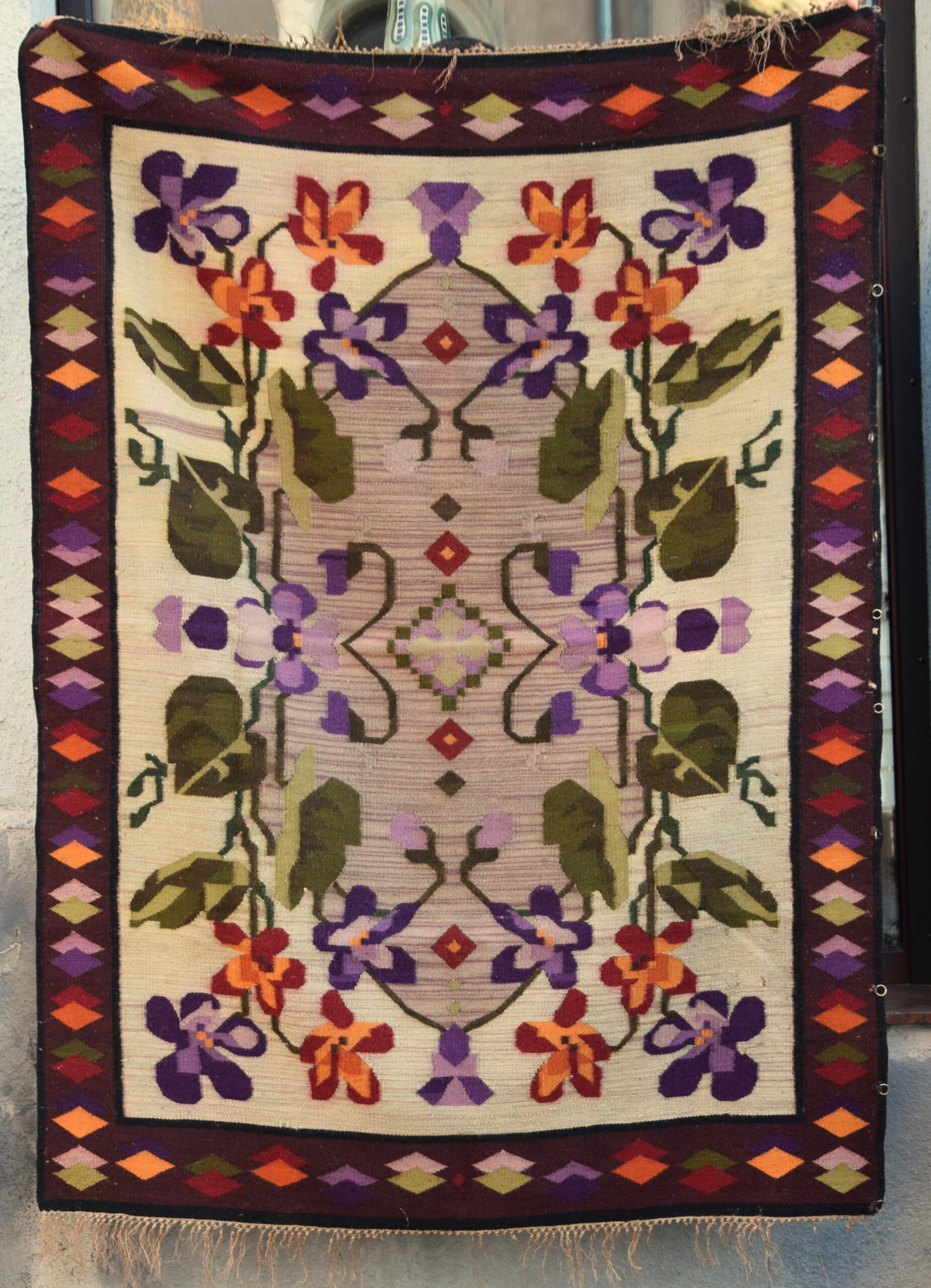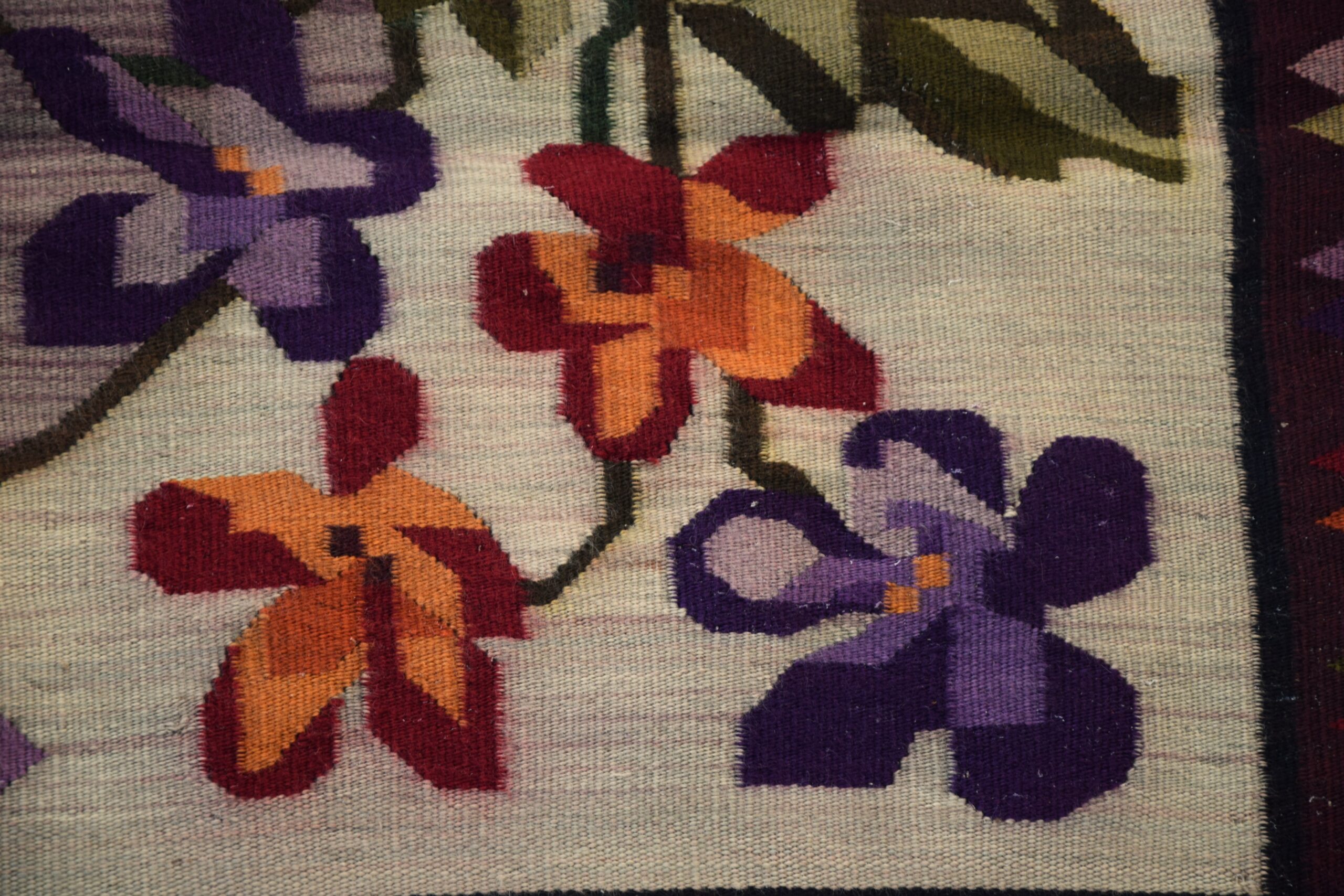 Kilim w stylu Art Deco z motywem kwiatowym.