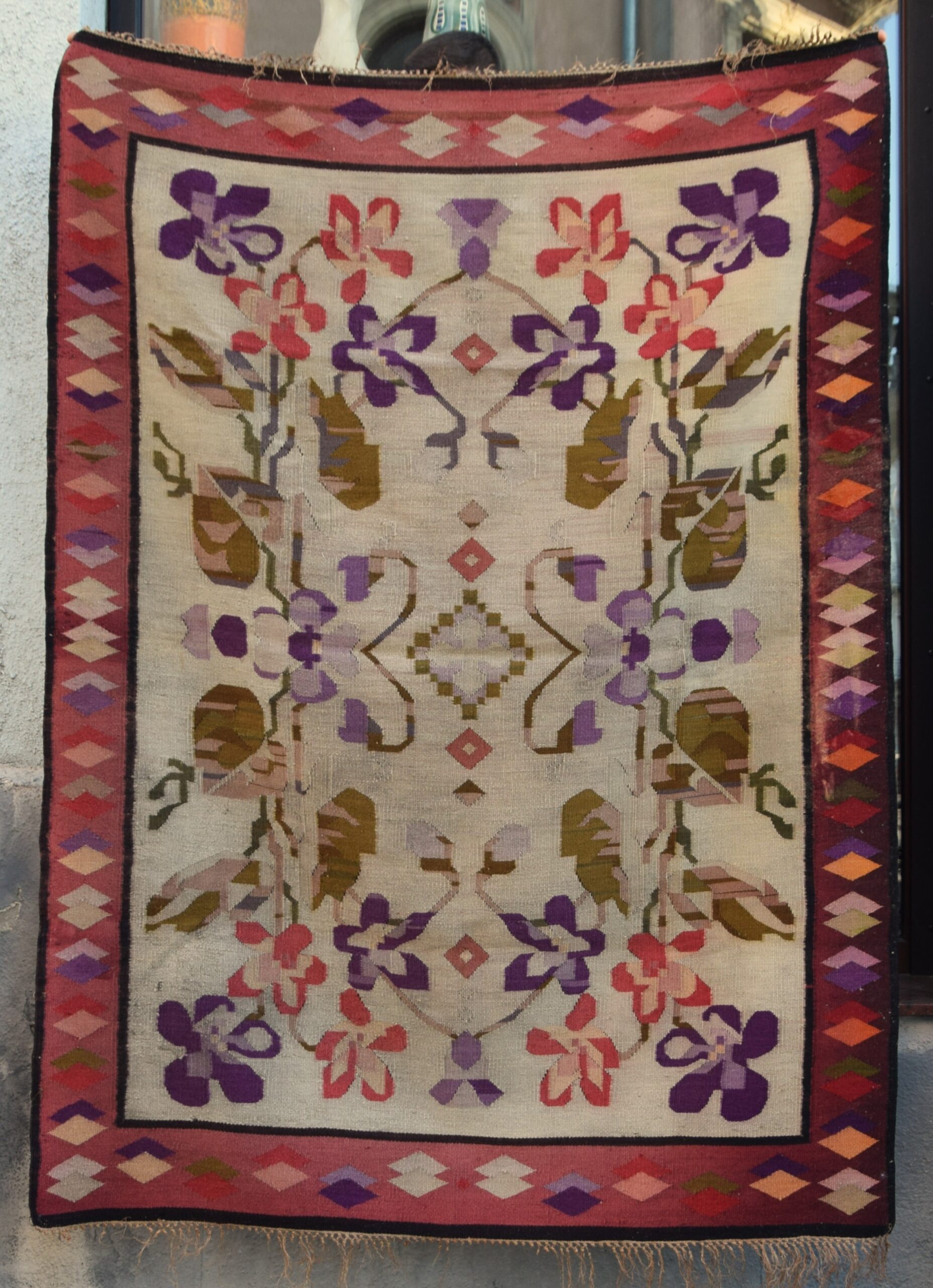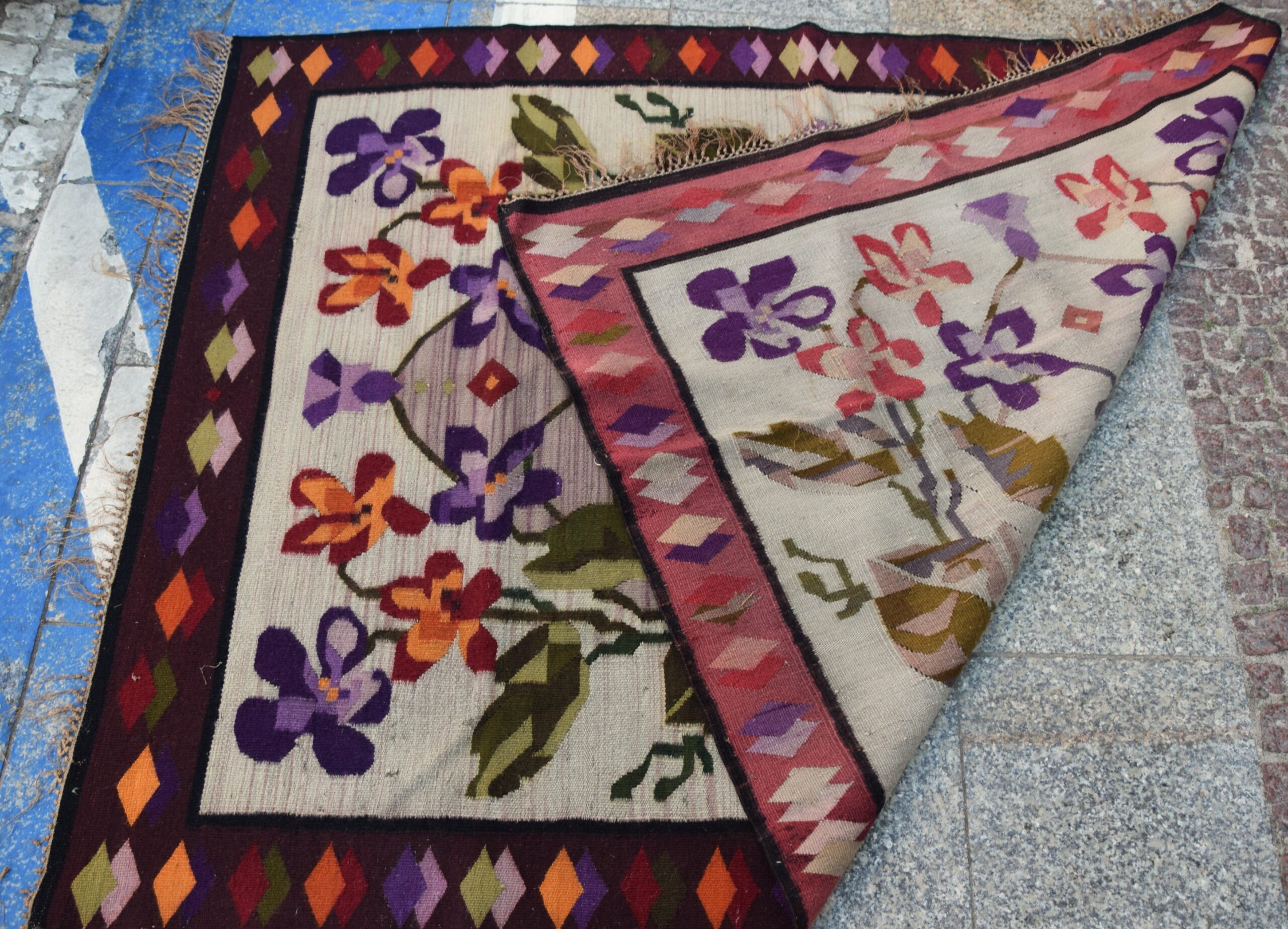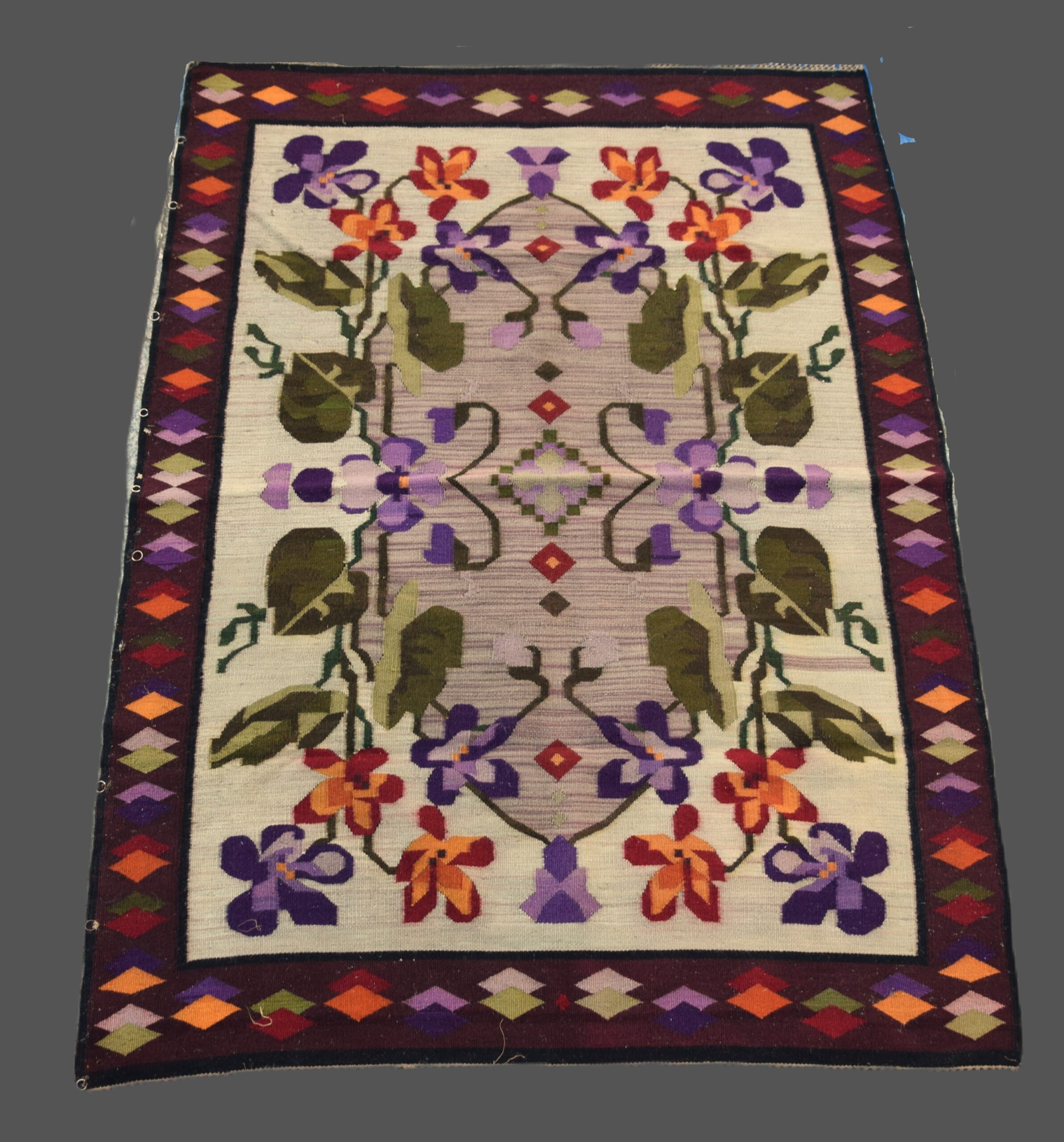 Kilim „Kwiaty w stylu Art Deco”, Gliniany, Kresy, Polska, lata 30-te.
