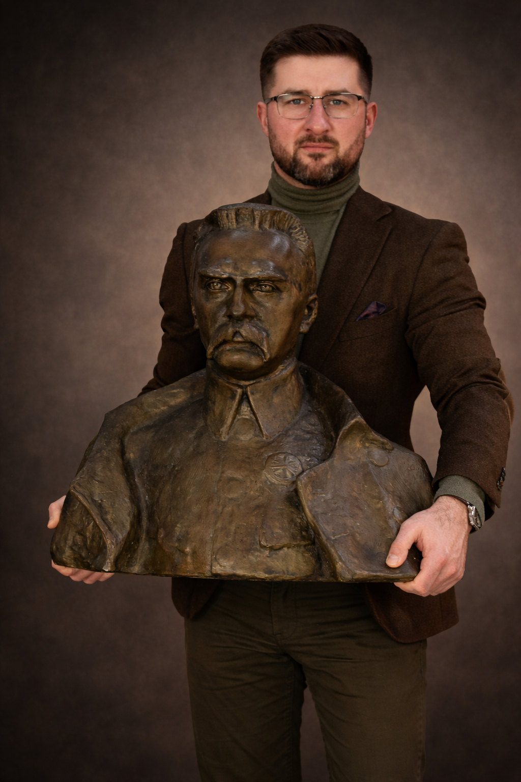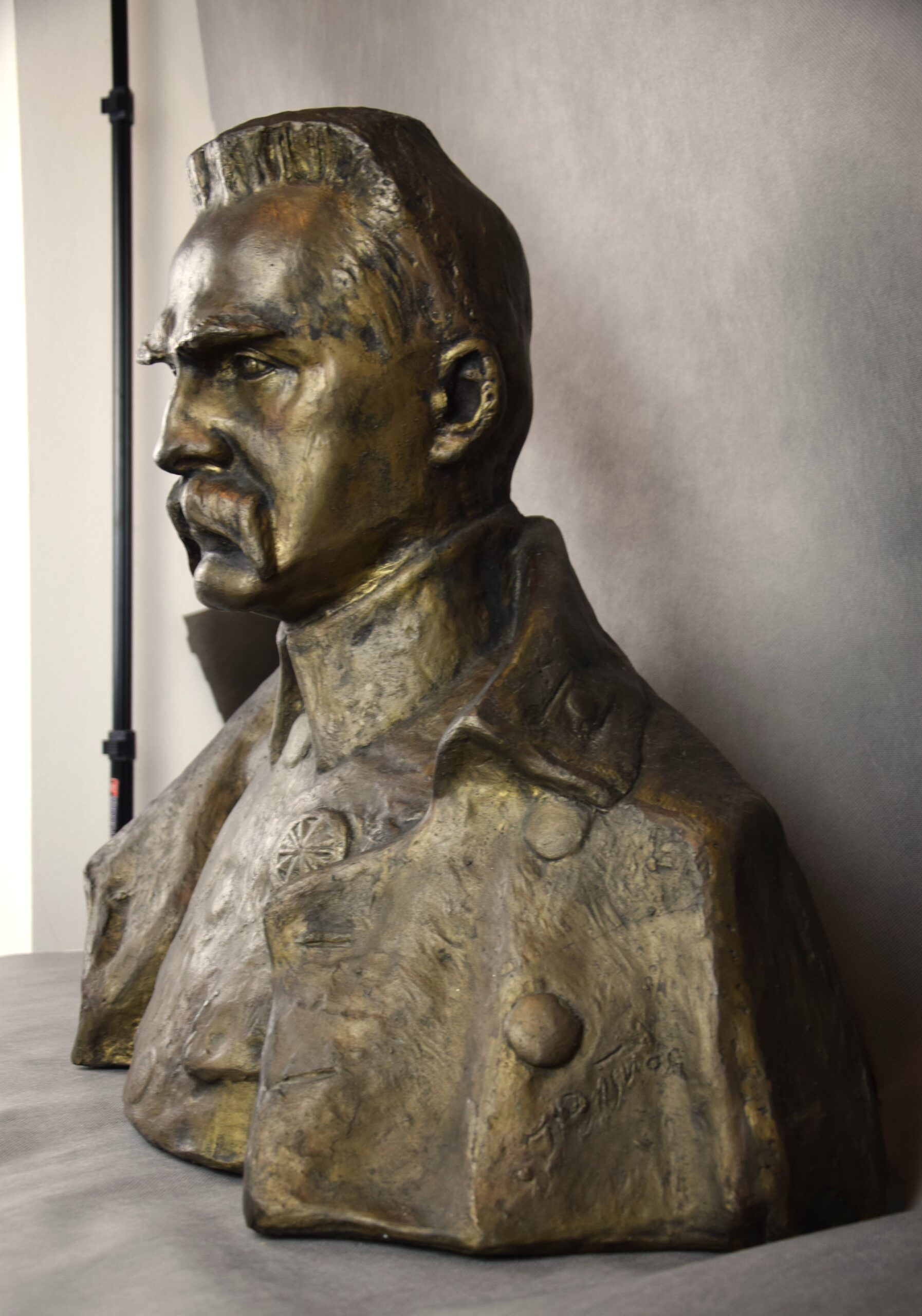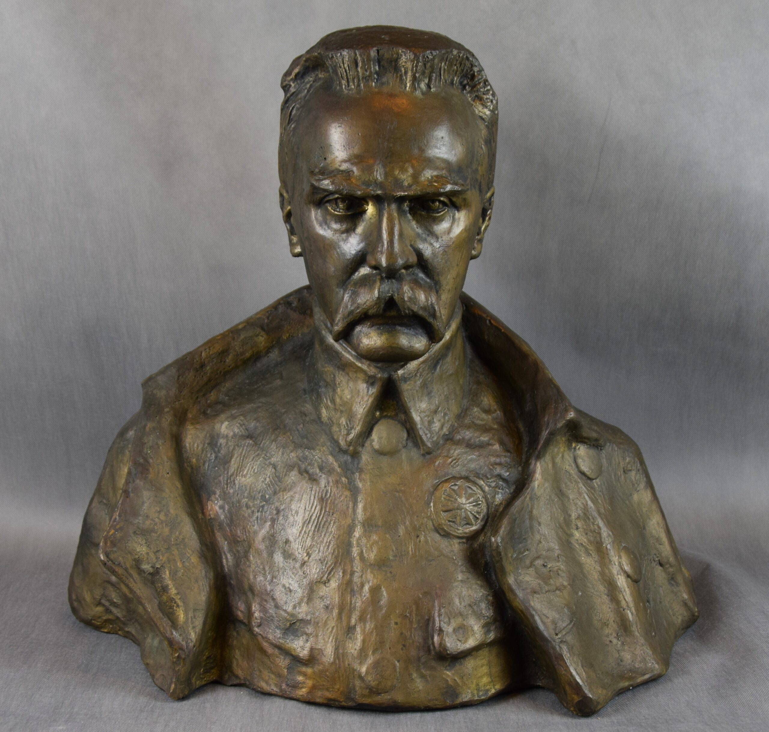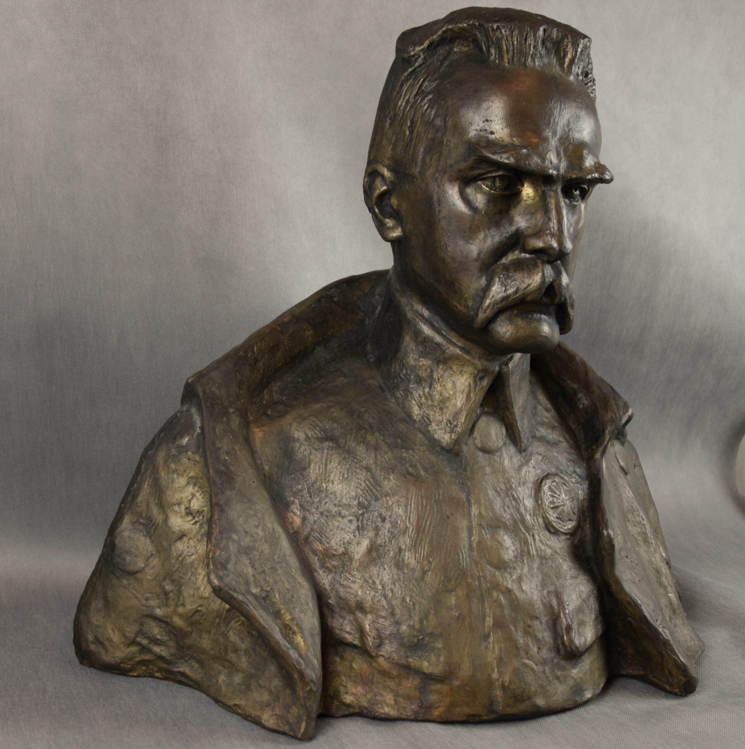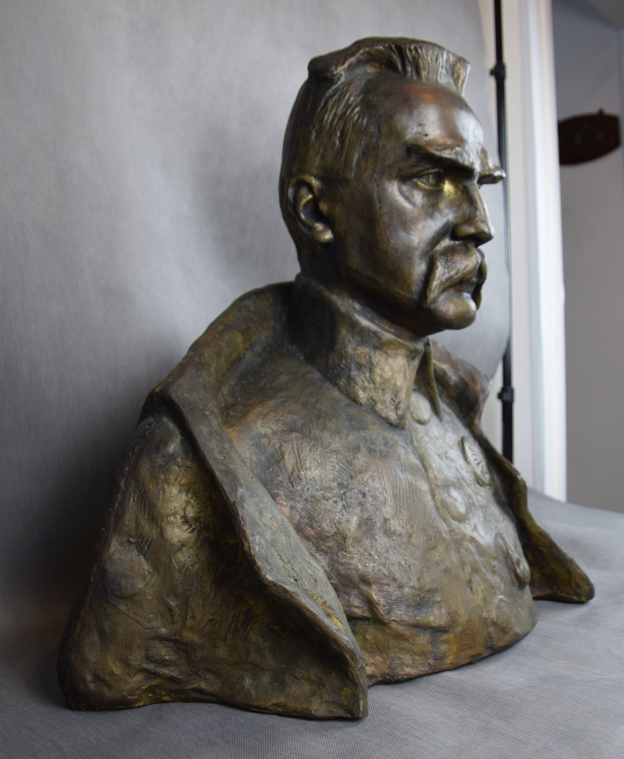 Duża rzeźba z brązu „Popiersie Marszałka Józefa Piłsudskiego”