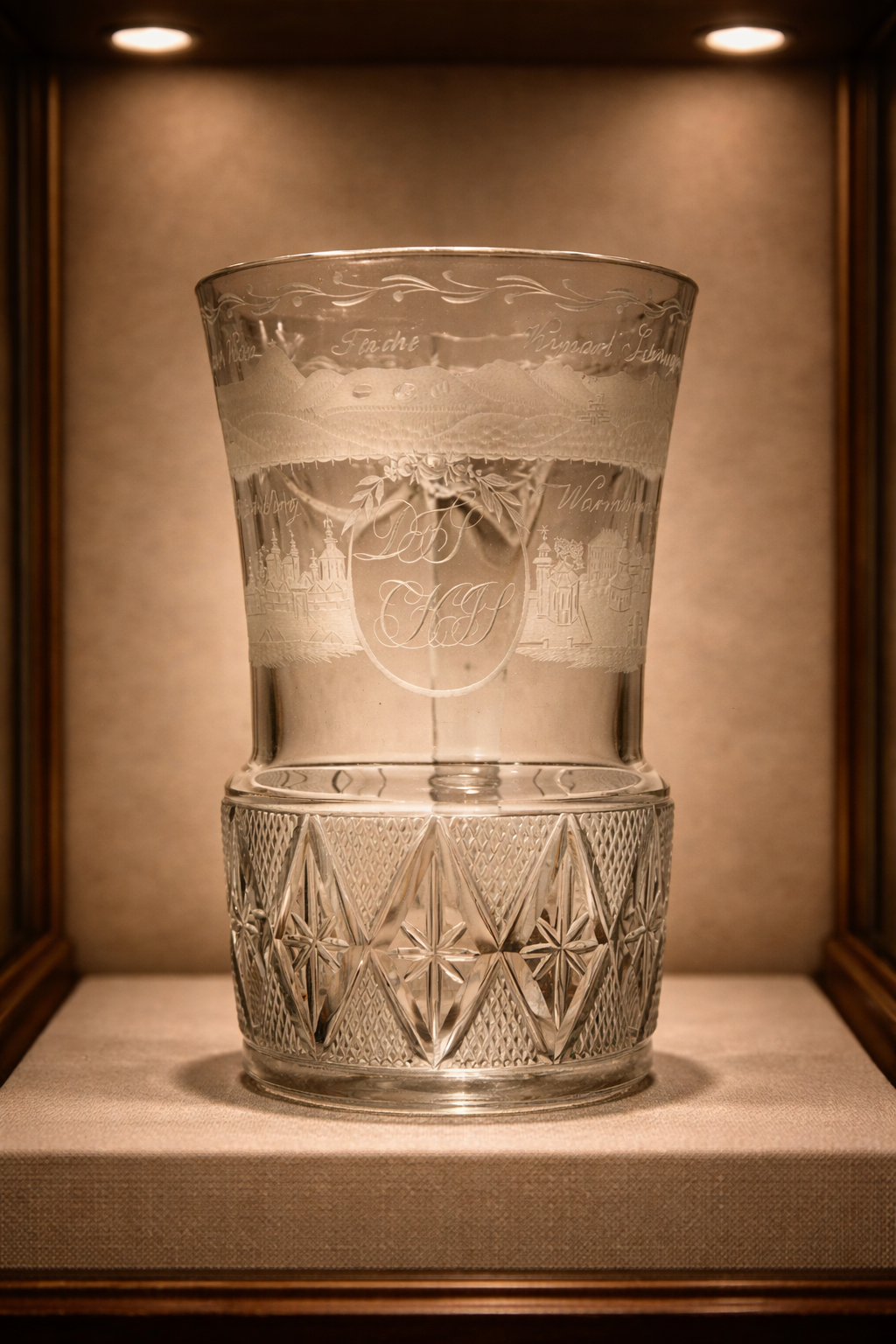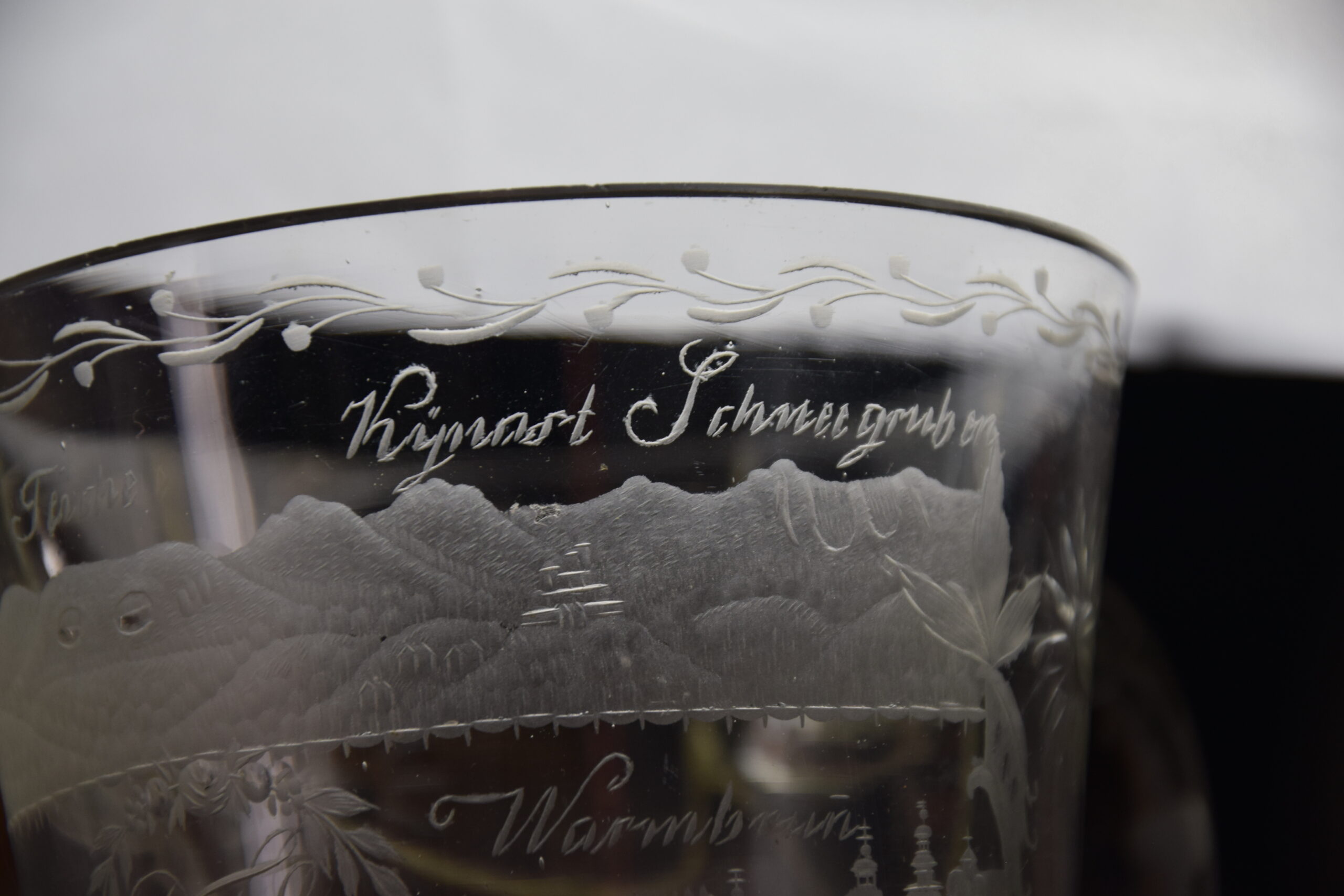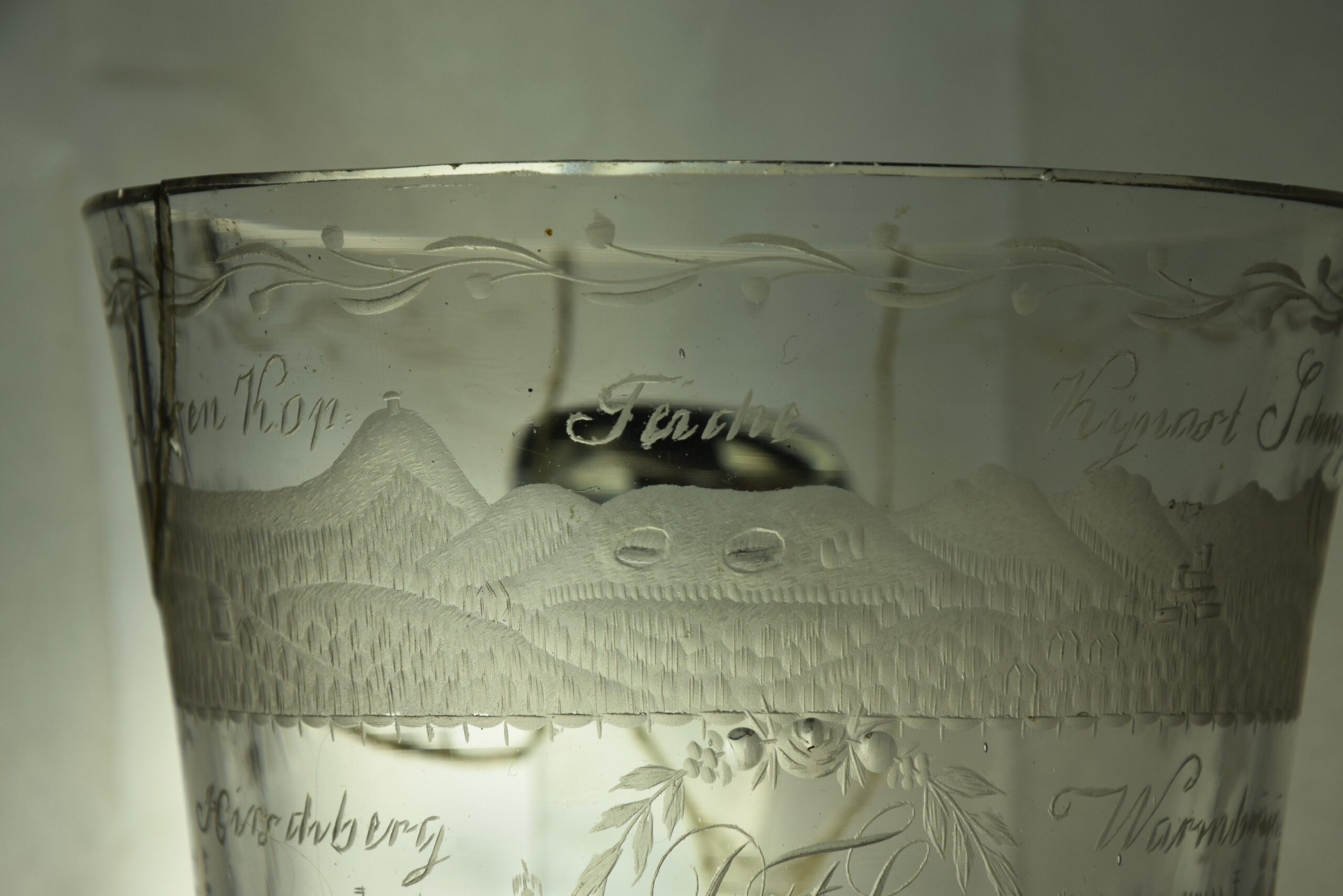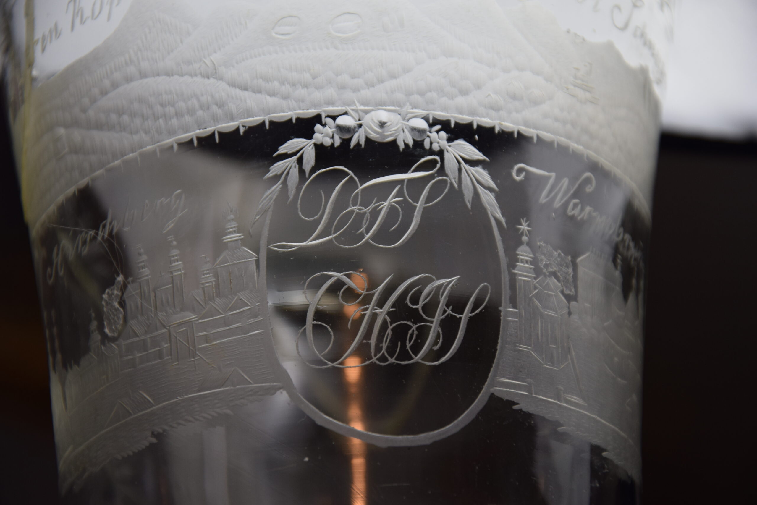 Duży kufel z rytymi pejzażami z Dolnego Śląska.