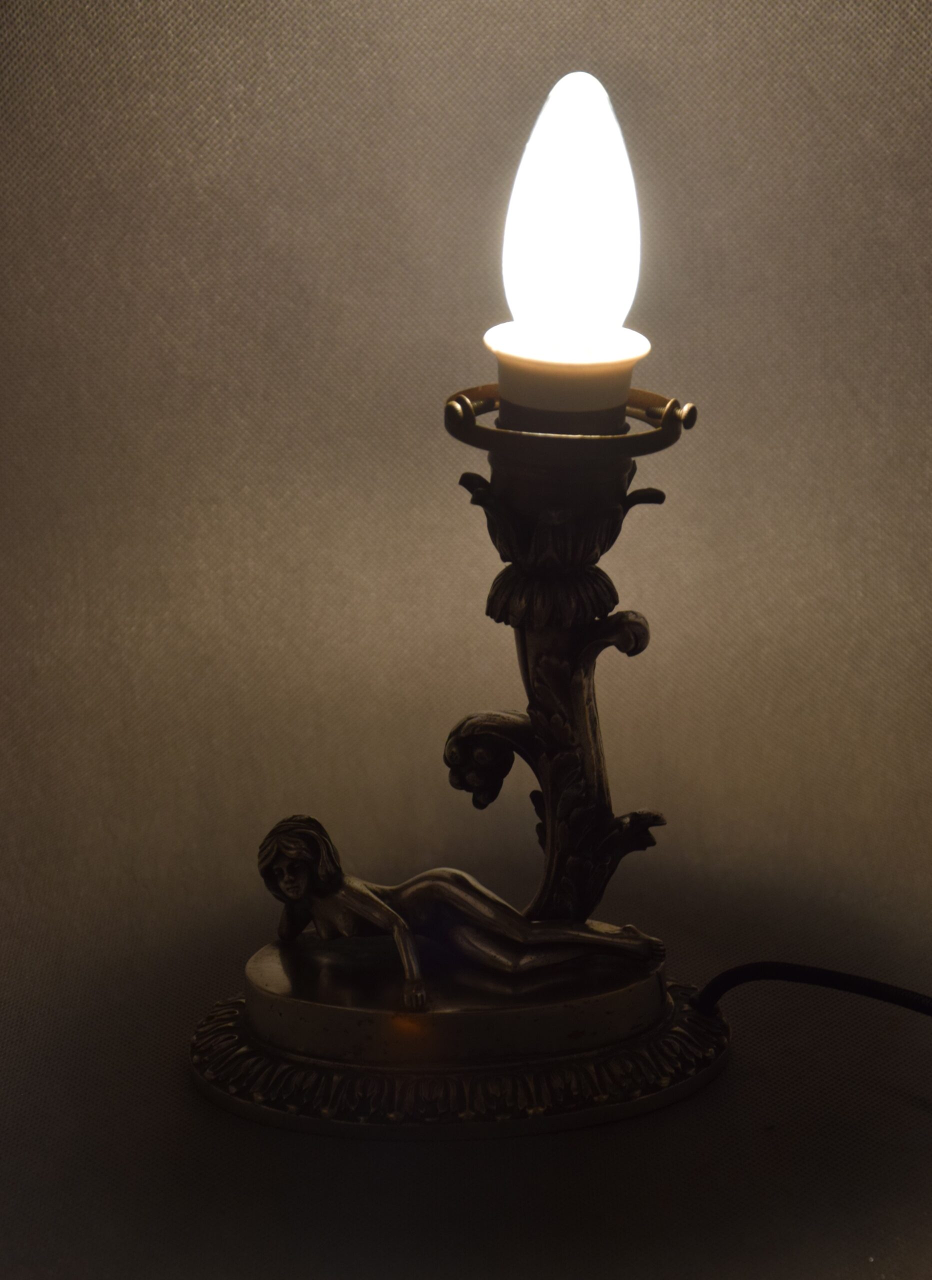 Wymiary: wys. do oprawki 19,5 cm, szer. podstawy 15 cm.