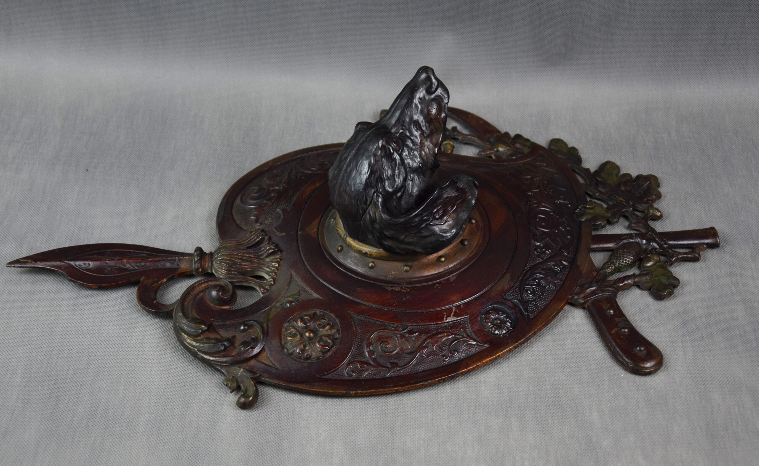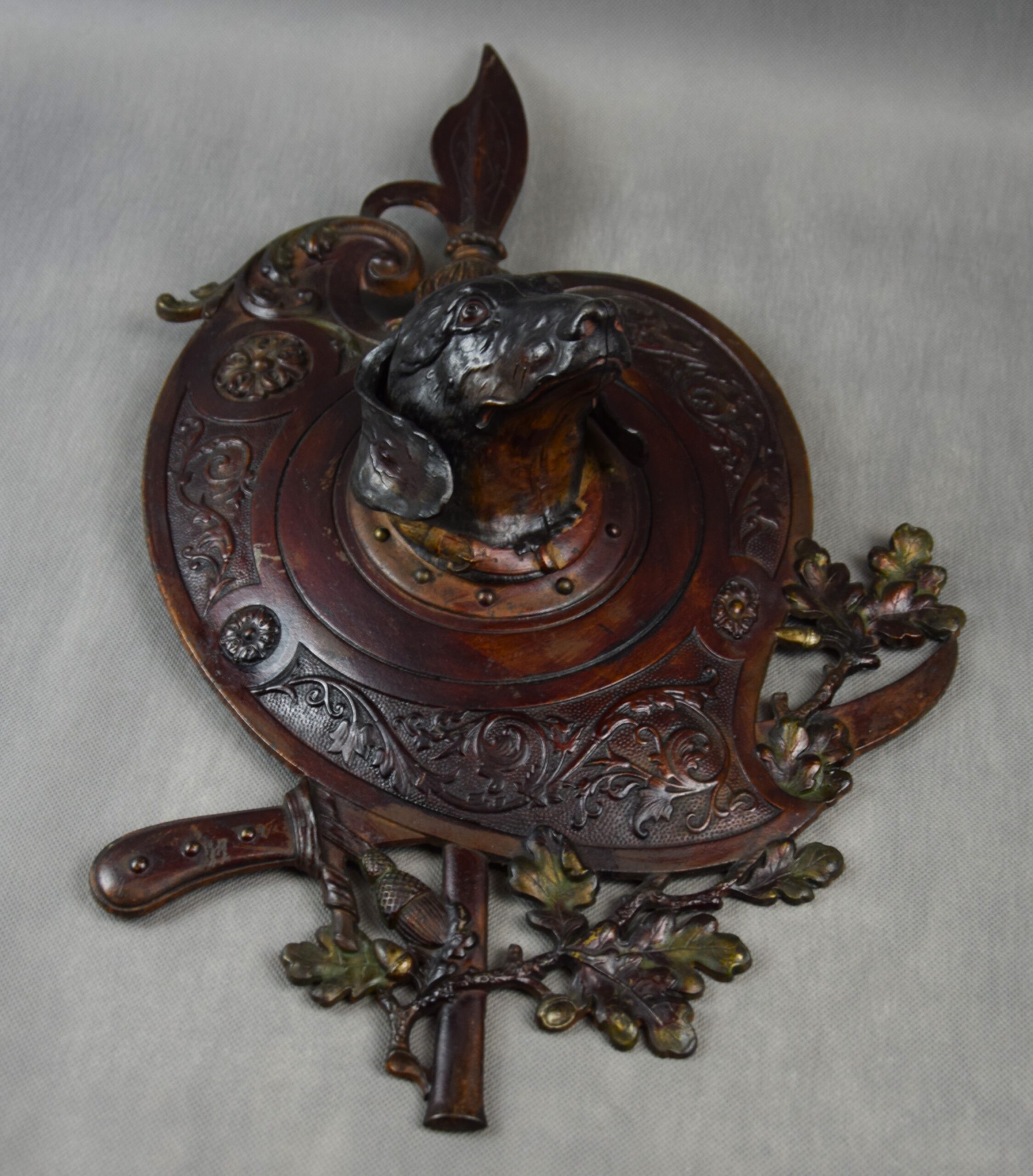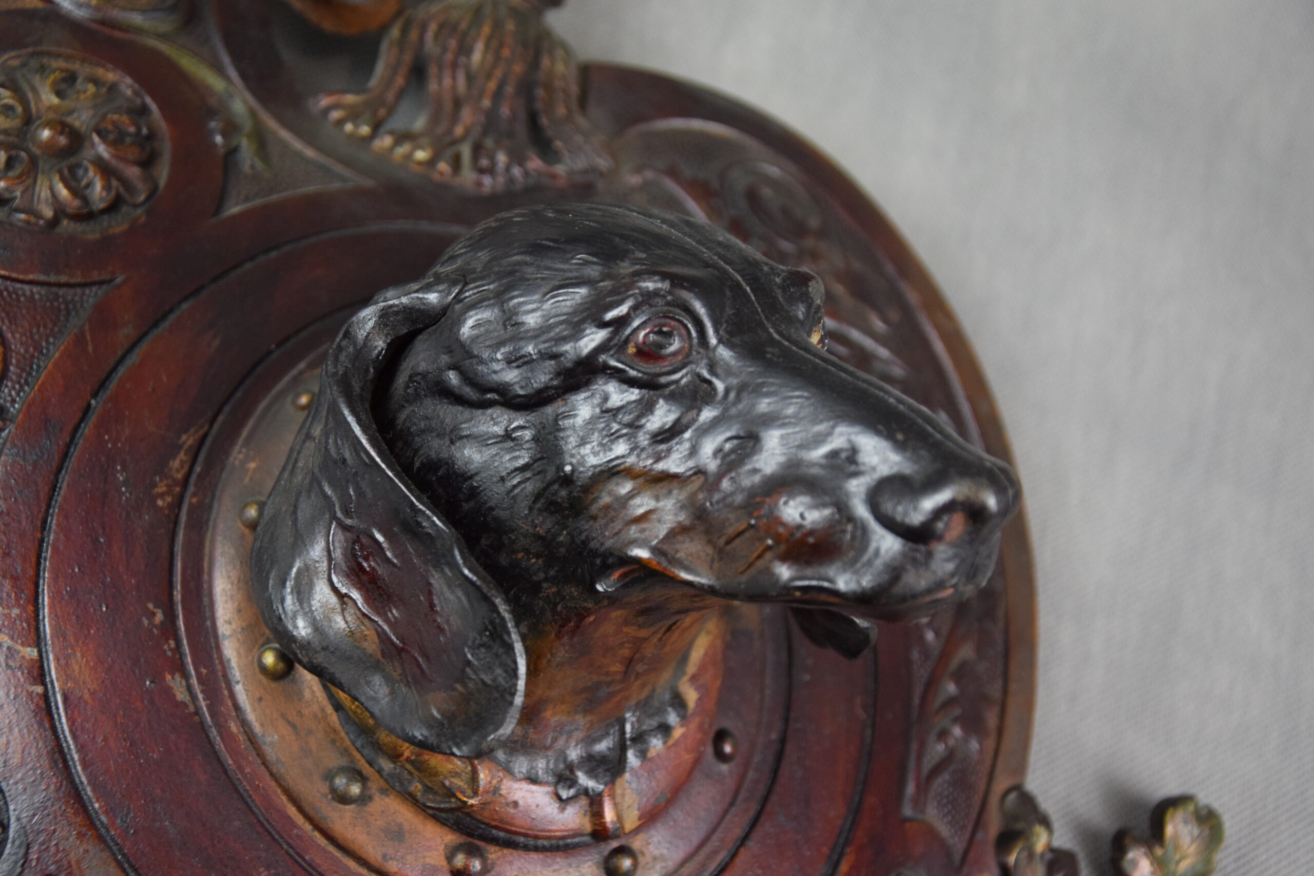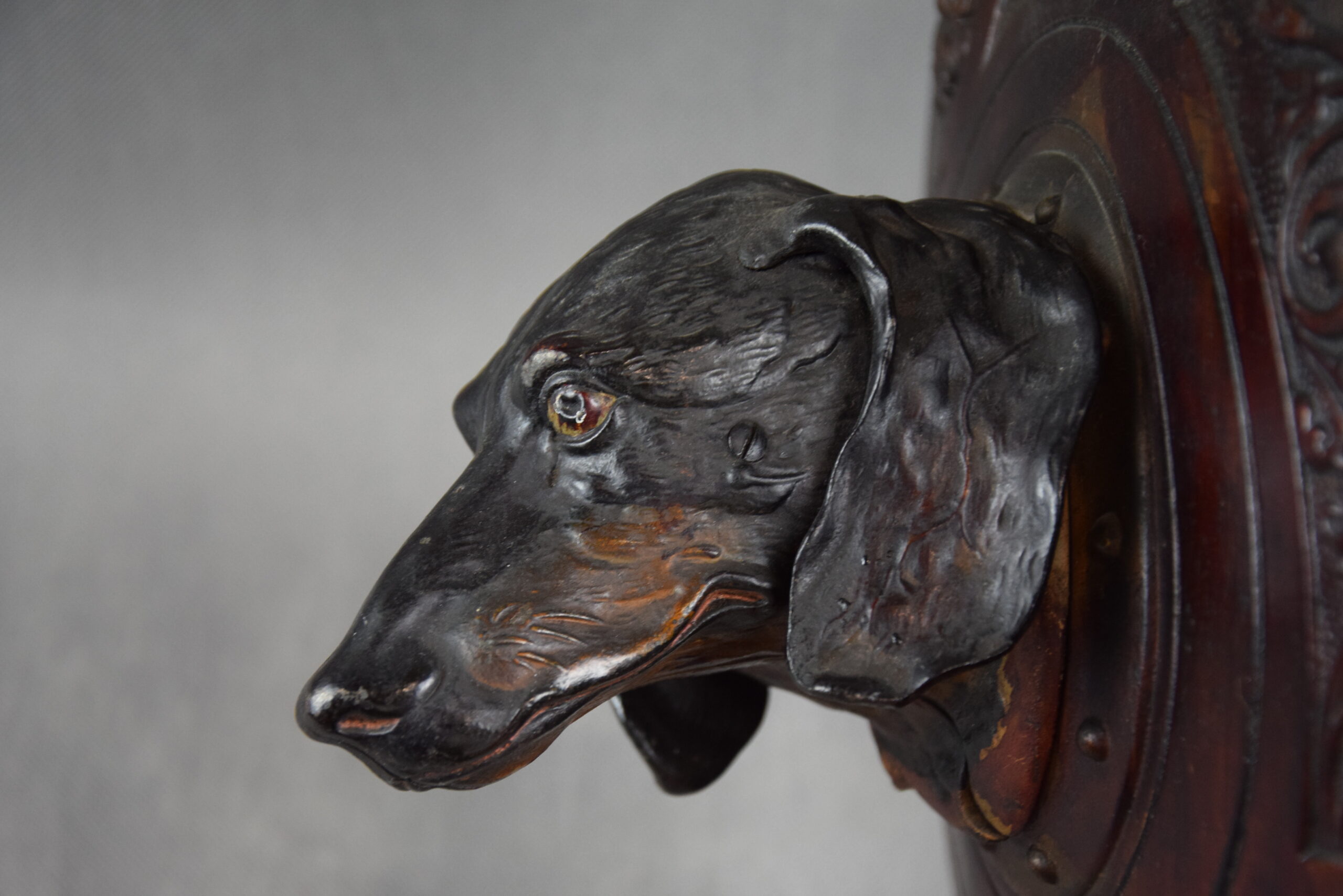 Para dekoracyjnych plakiet o tematyce myśliwskiej w formie trofeum – panoplium łowieckie.