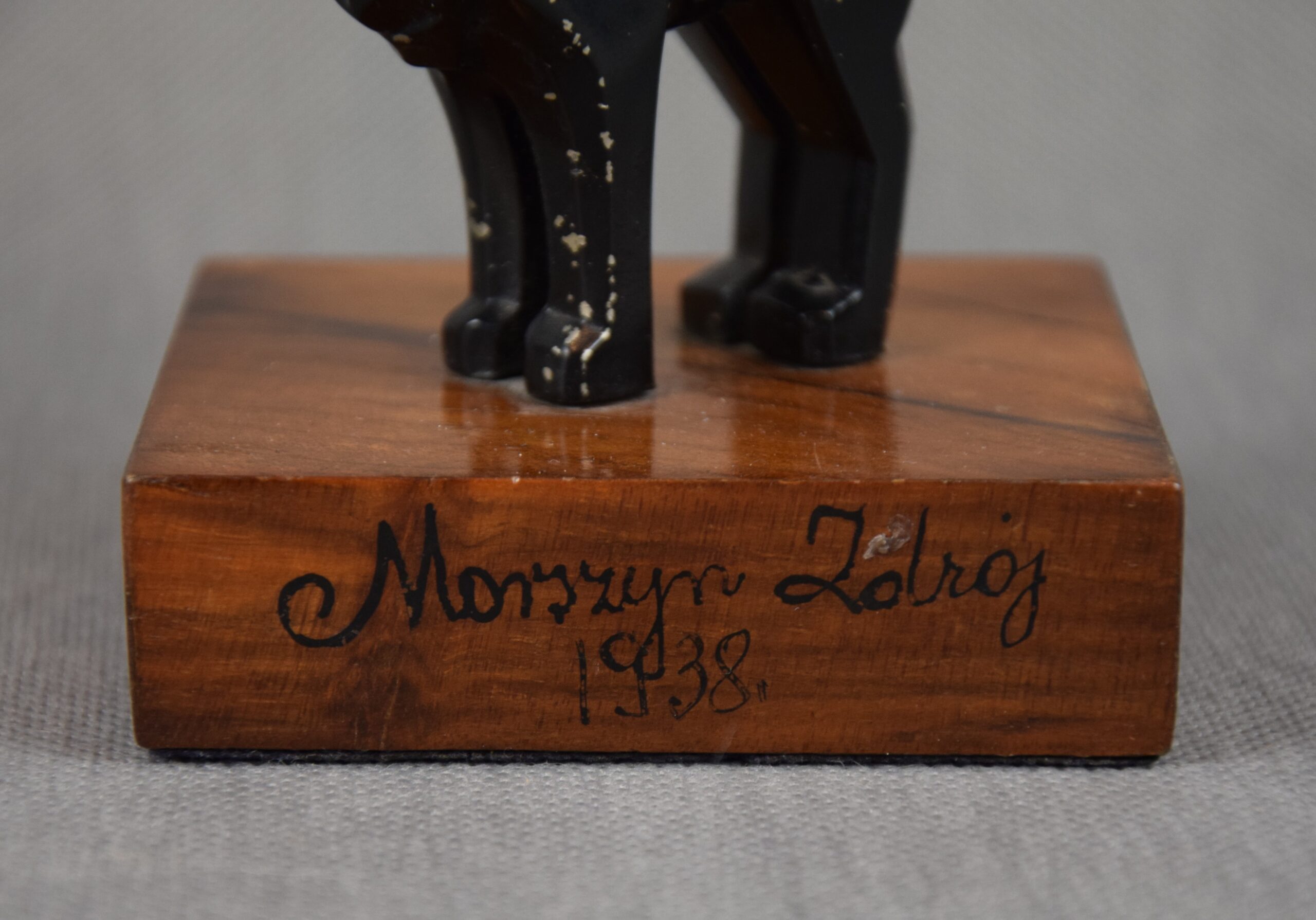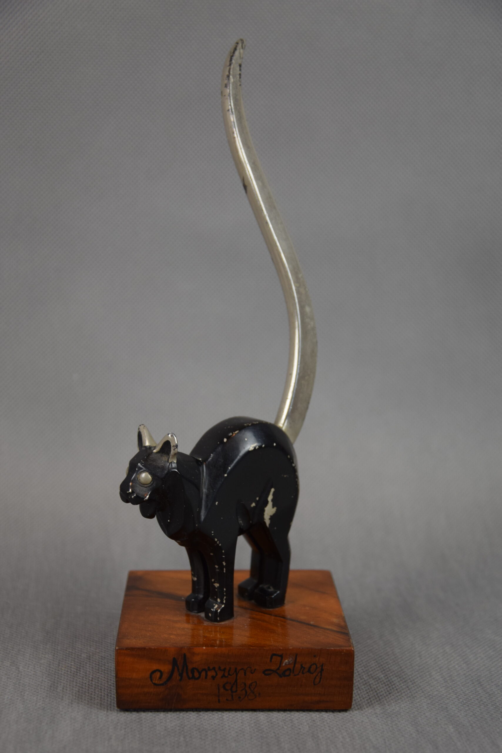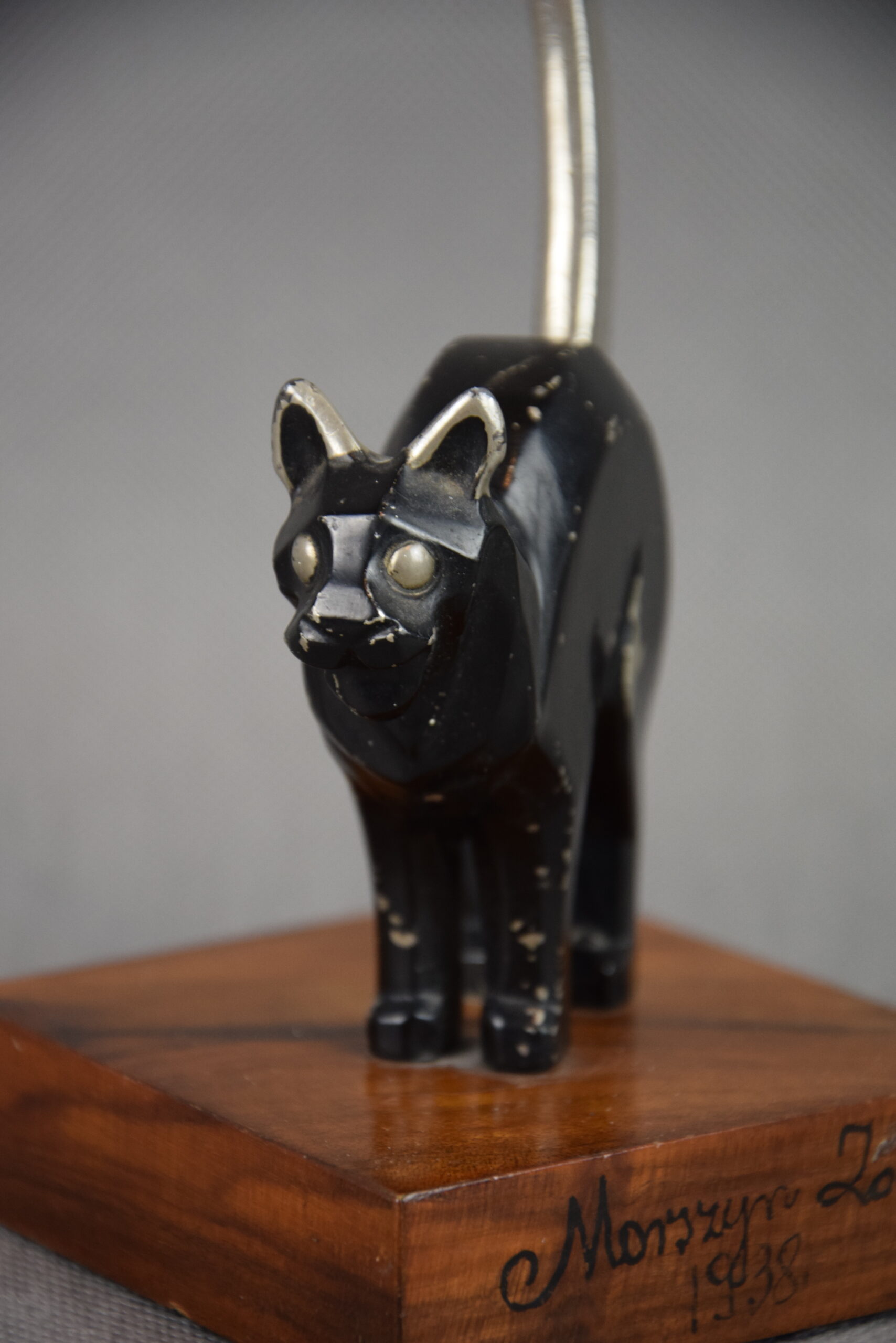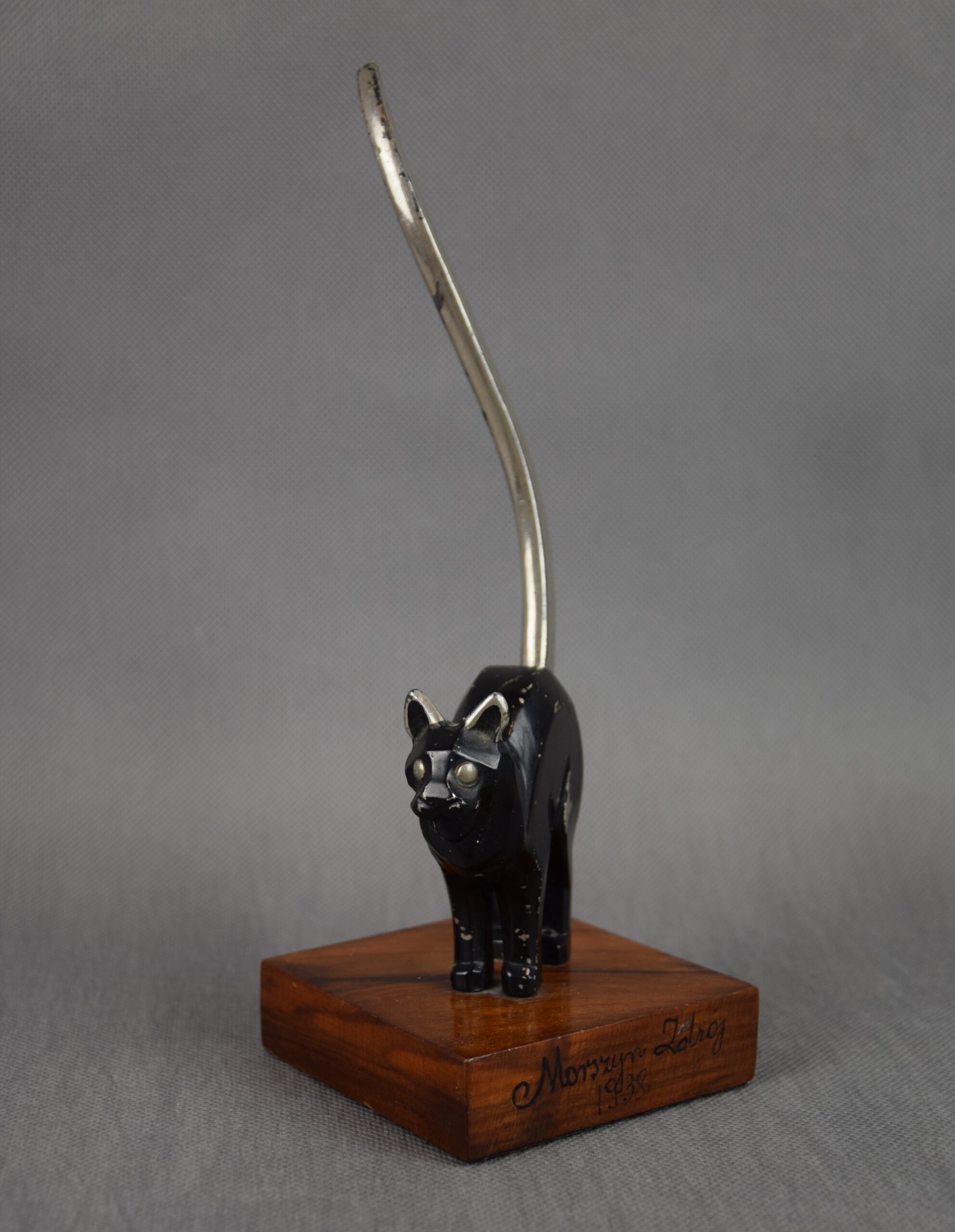 Rzeźba „Nastroszony kot” Art Deco, Polska, Kresy, 1938 r. Morszczyn Zdrój