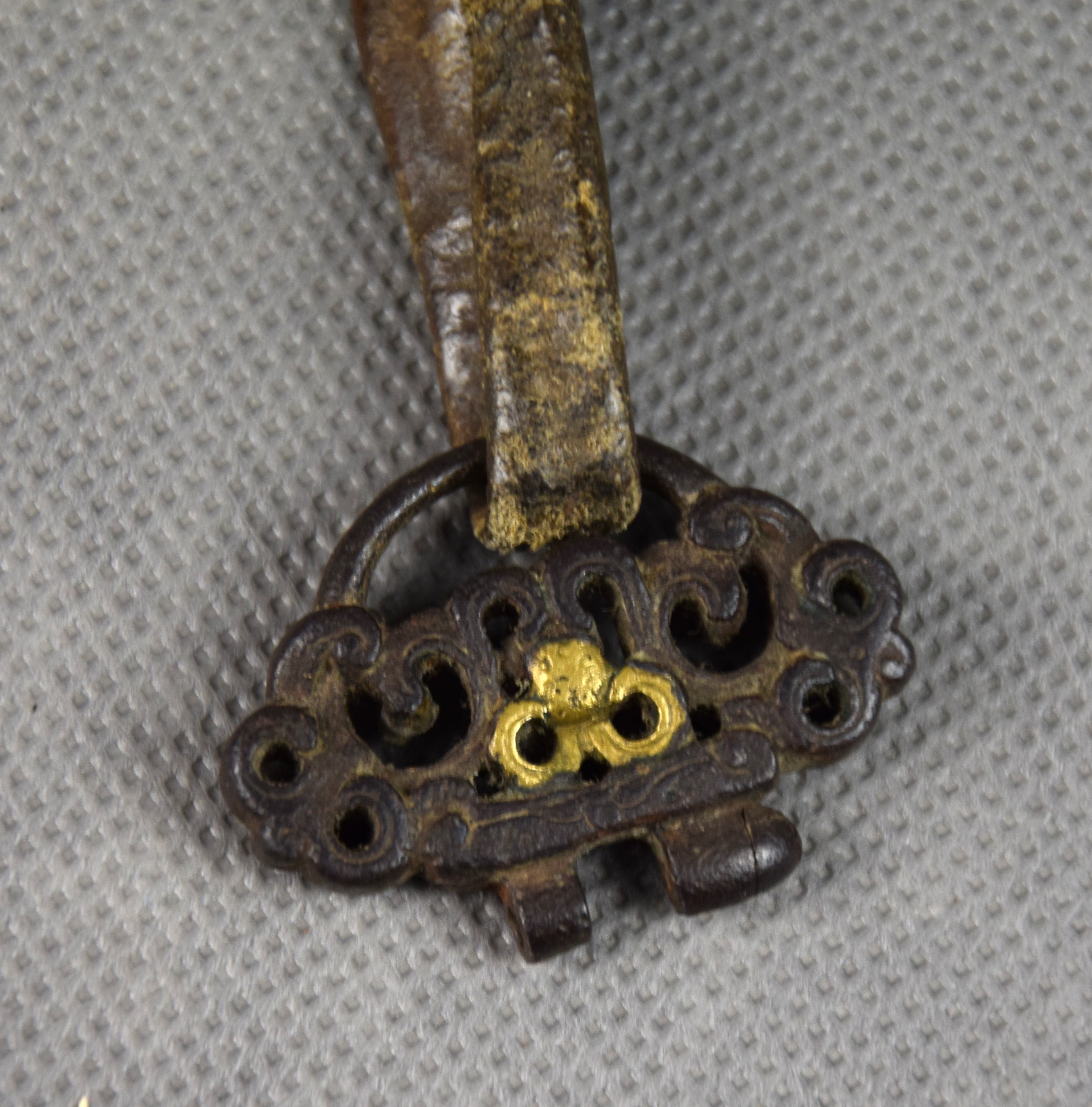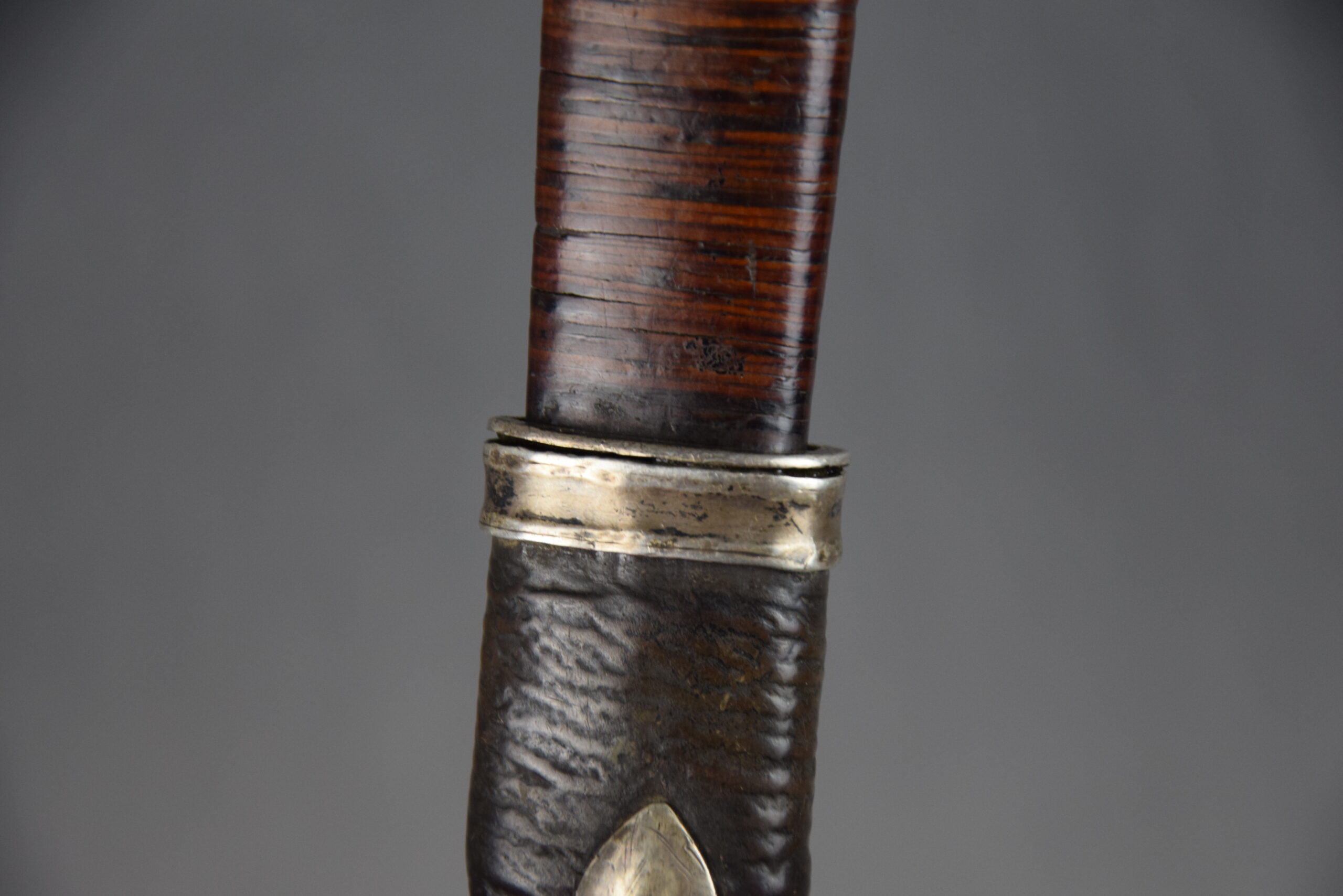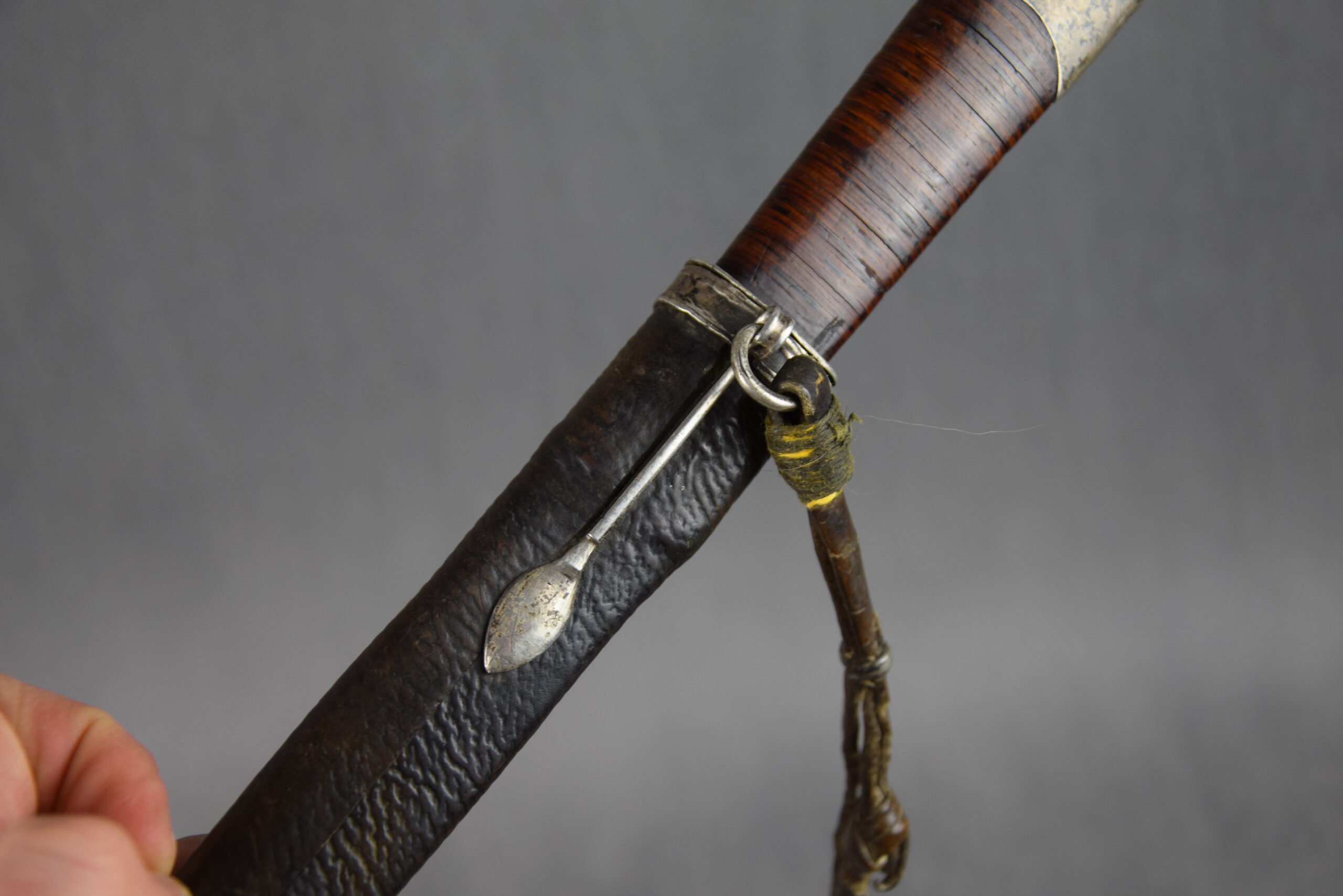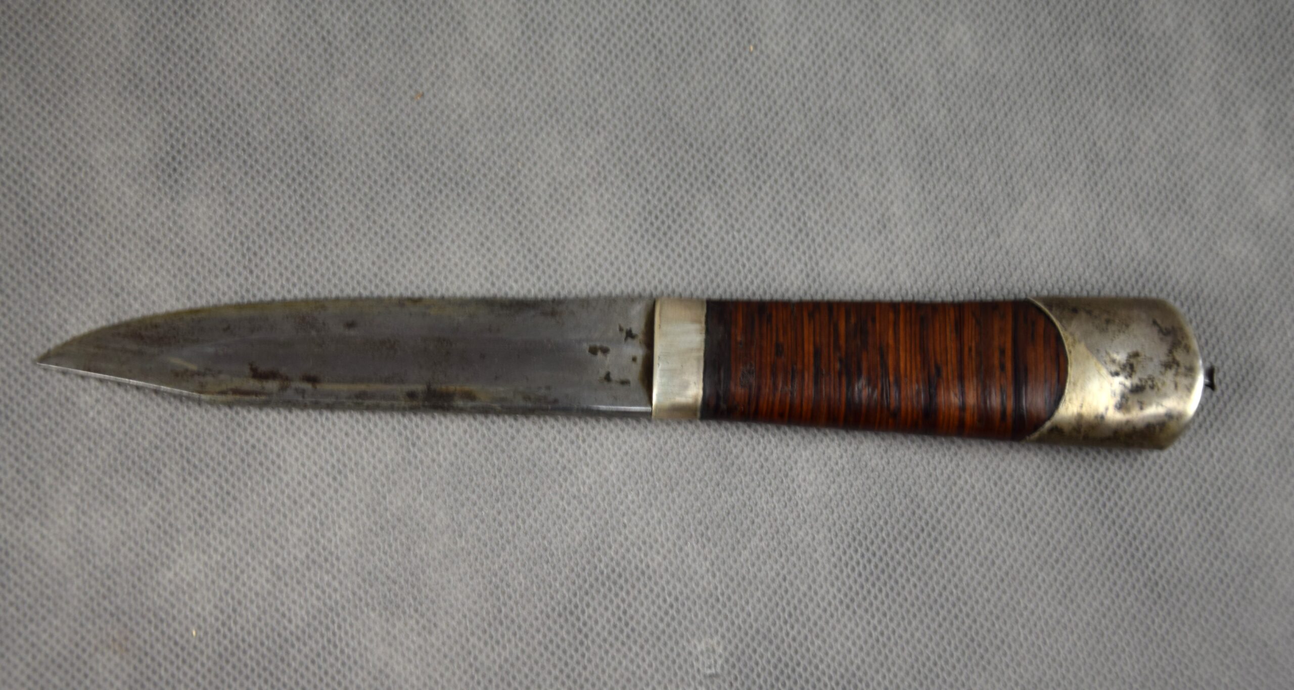 Sztylet w pochwie na rzemieniu z zawieszką z brązu.