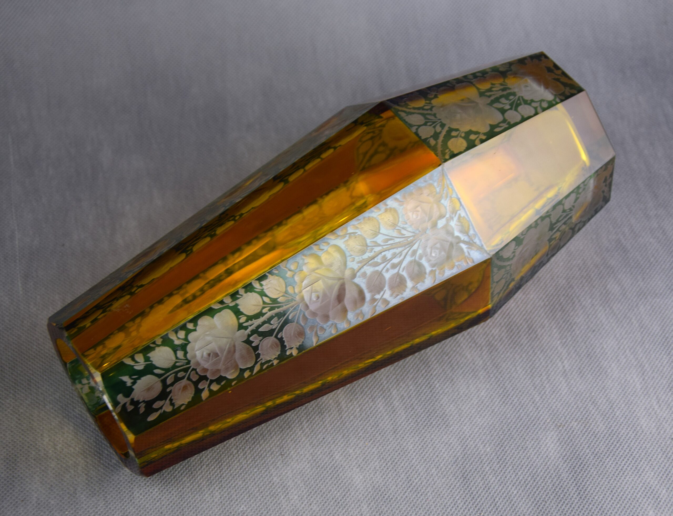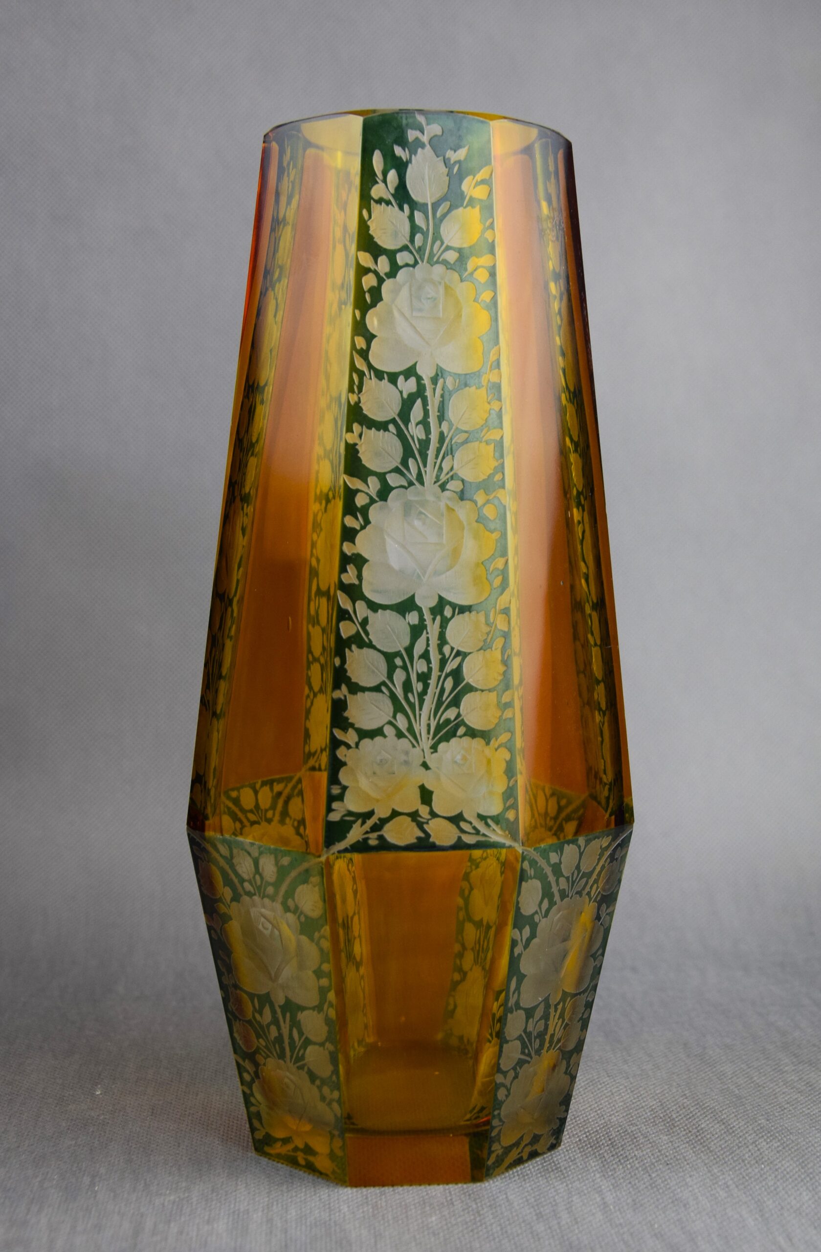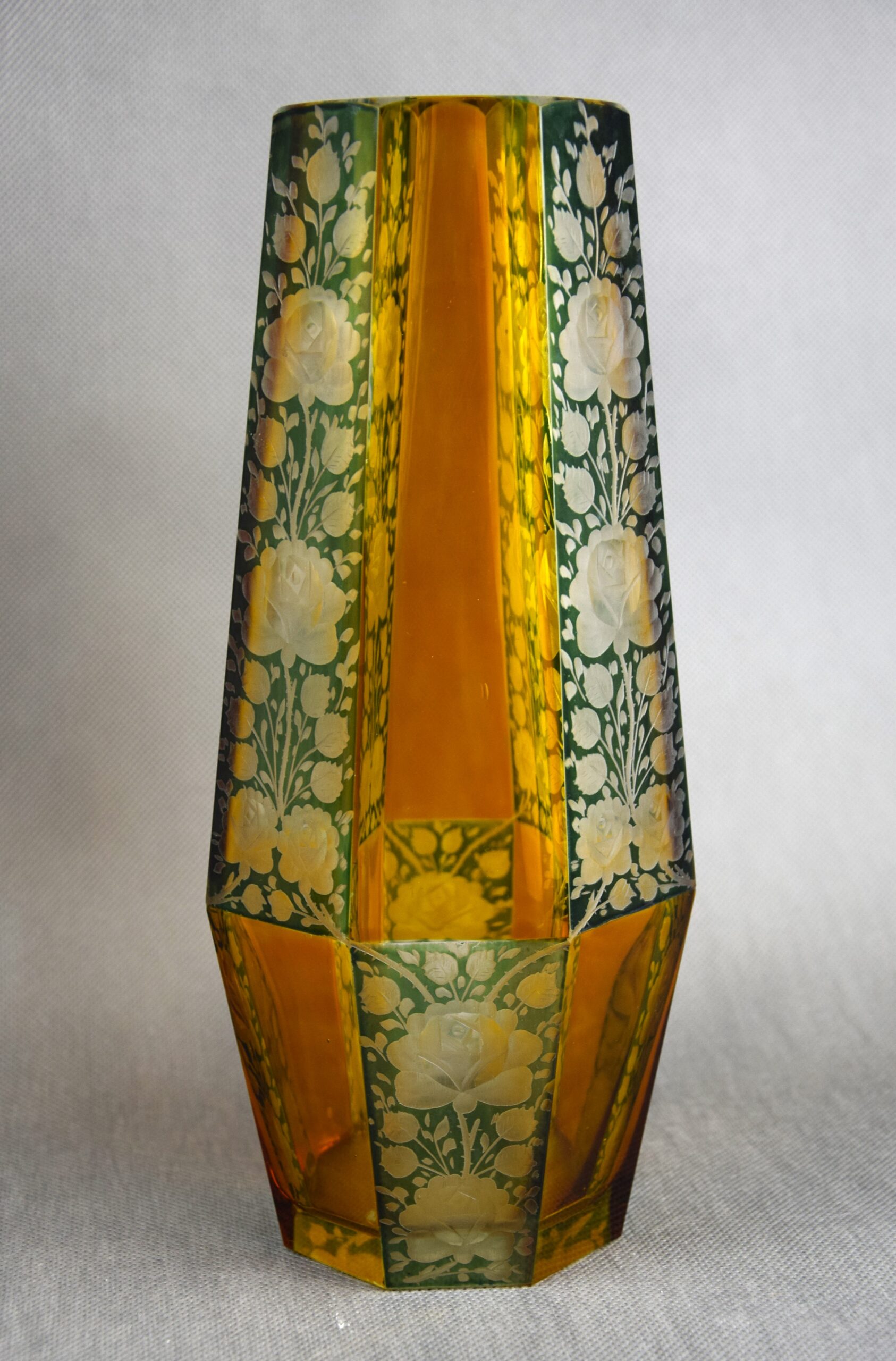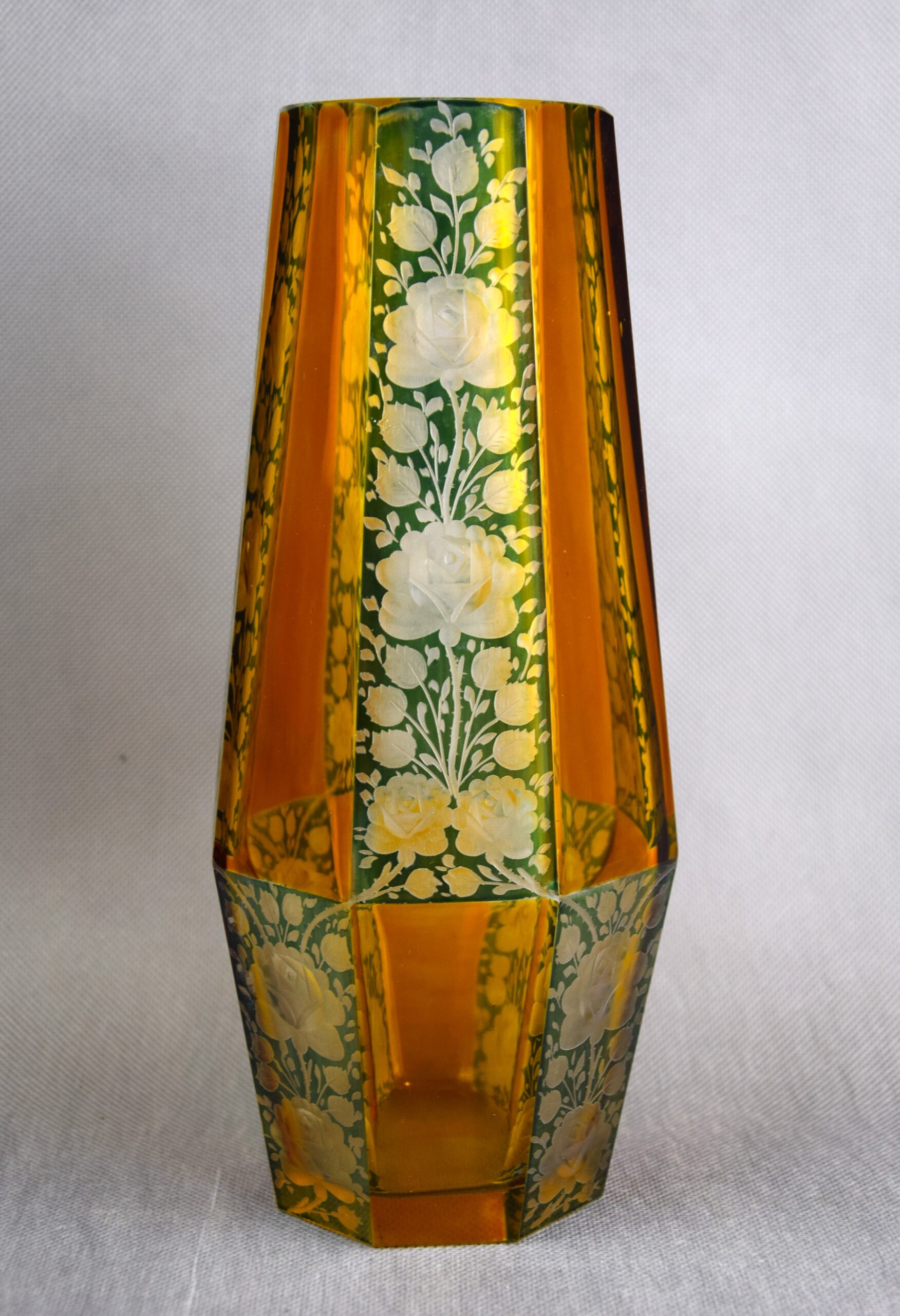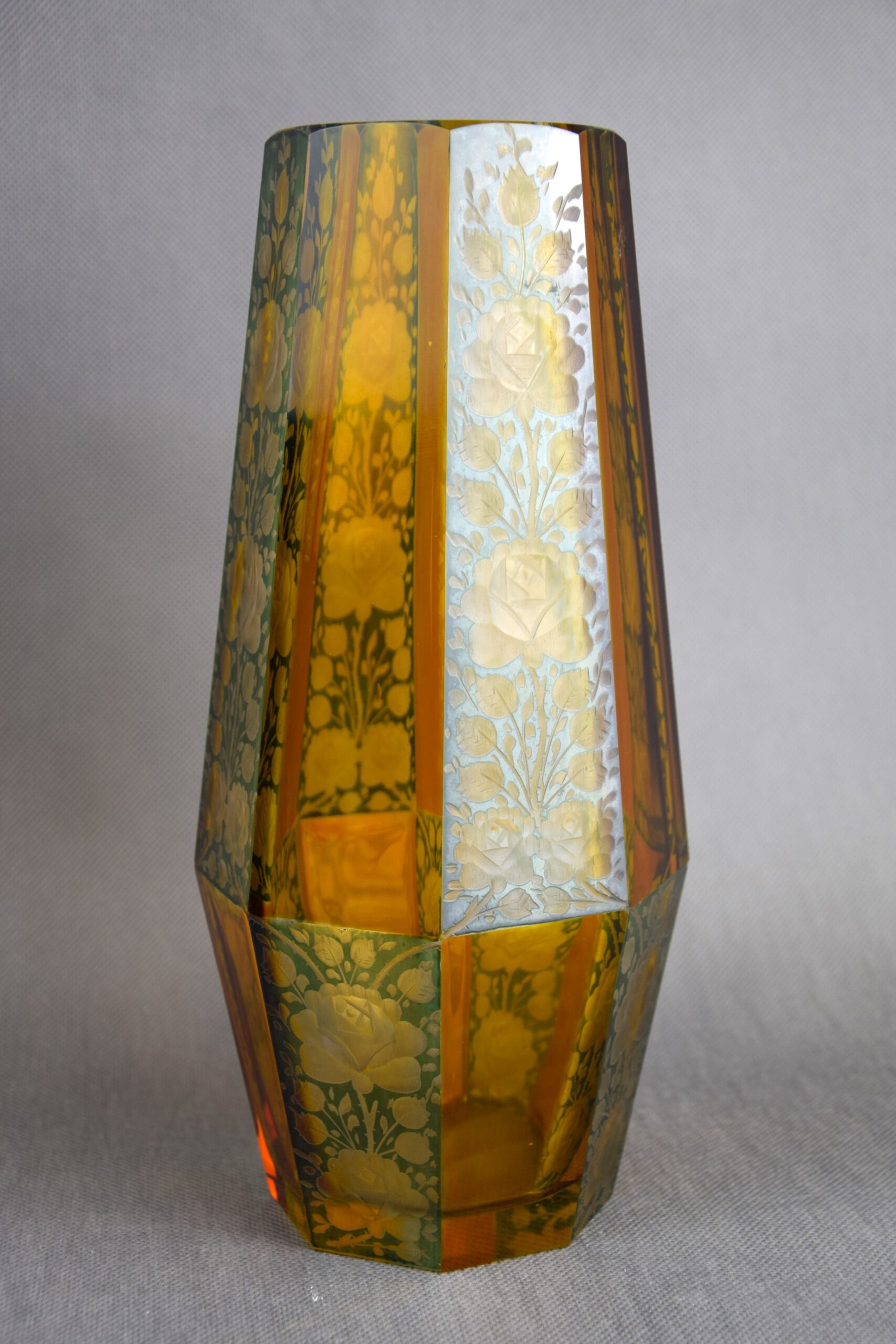 Sama forma wazonu nawiązuje do projektów Josefa Hoffmanna z Warsztatów Wiedeńskich.