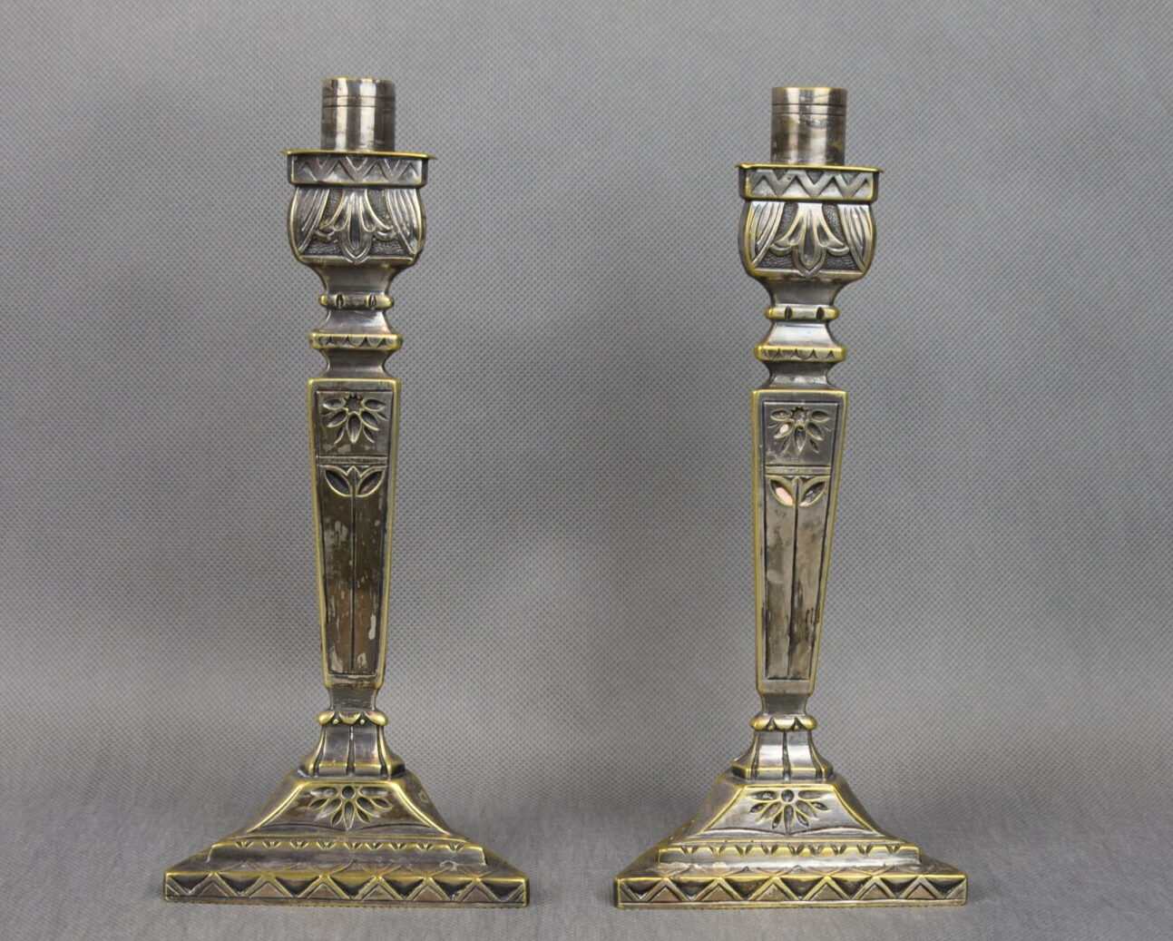 Świeczniki w stylu zakopiańskim. Marcin Jarra, Kraków, pocz. XX w., brąz srebrzony, Rzadkość!
