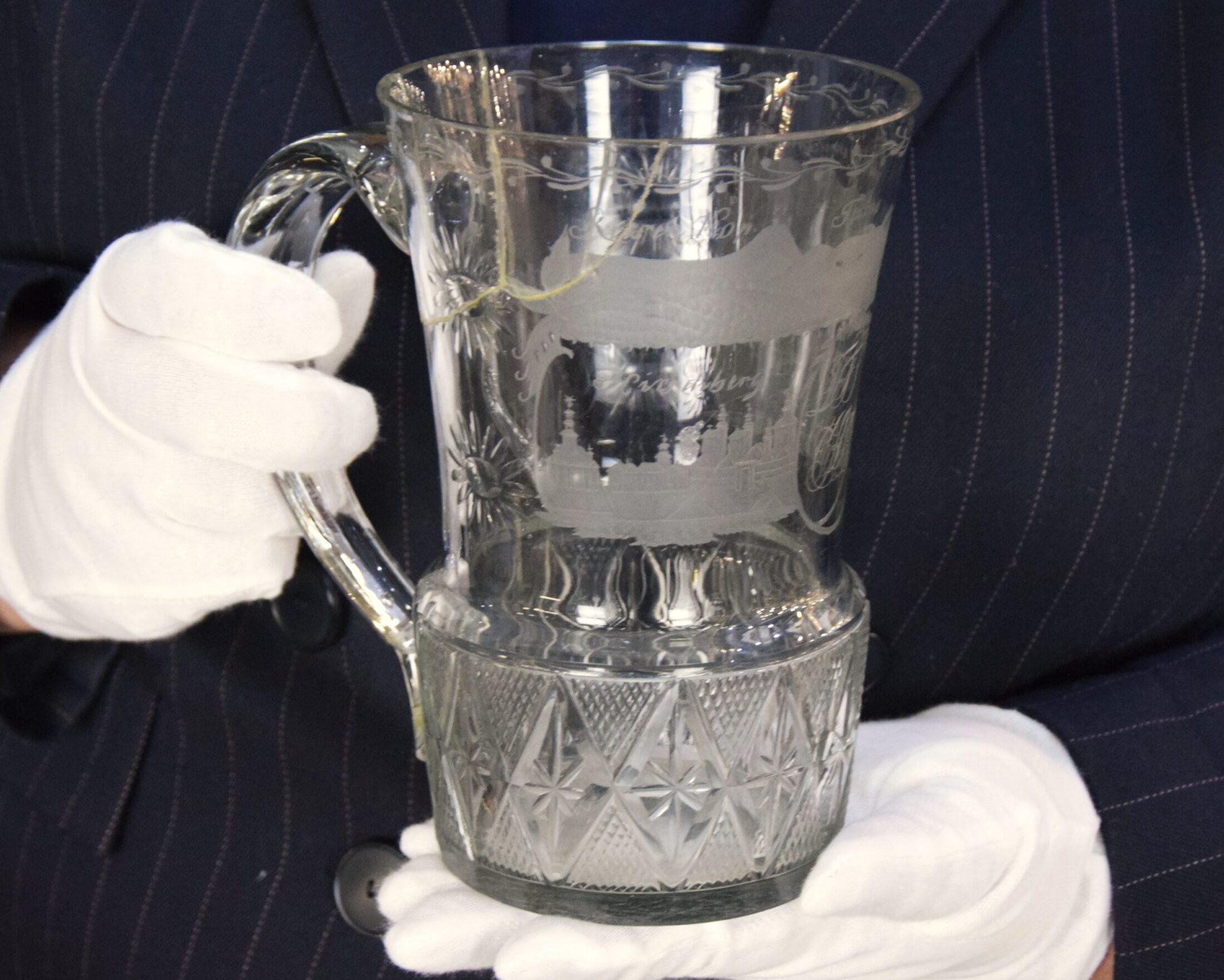 Kufel z pejzażami z Karkonoszy, pocz. XIX w., Jelenia Góra, Śnieżka, Cieplice Śląskie, Dolny Śląsk, Josephinenhütte ?